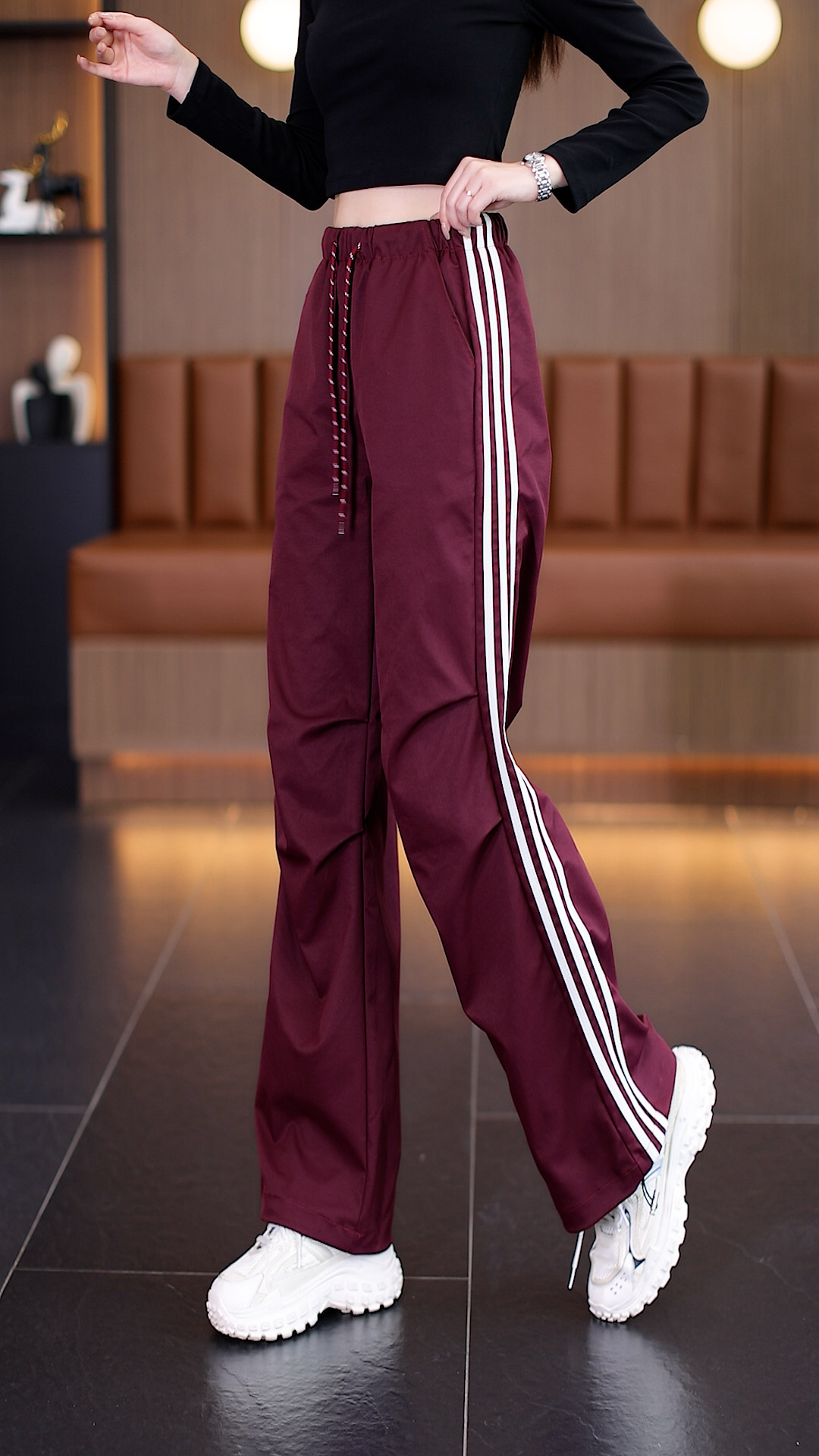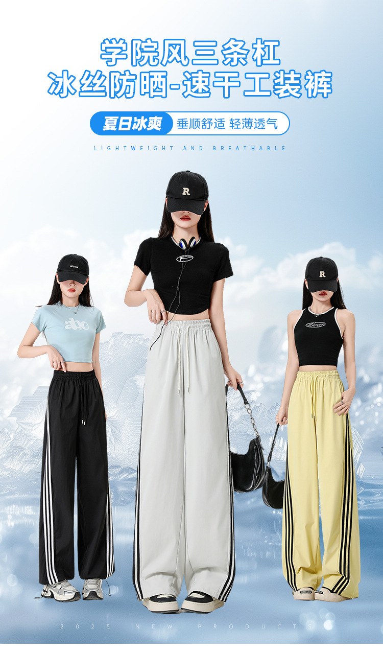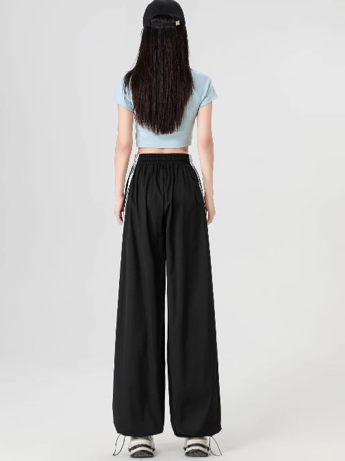 미국 스타일 캐주얼 작업복 바지 여름 가을 2025 등산 바지 하이웨이스트 드로스트링 바지 루즈핏 허리 조절 바지 여성 작업복 바지 도매스토어 가기
