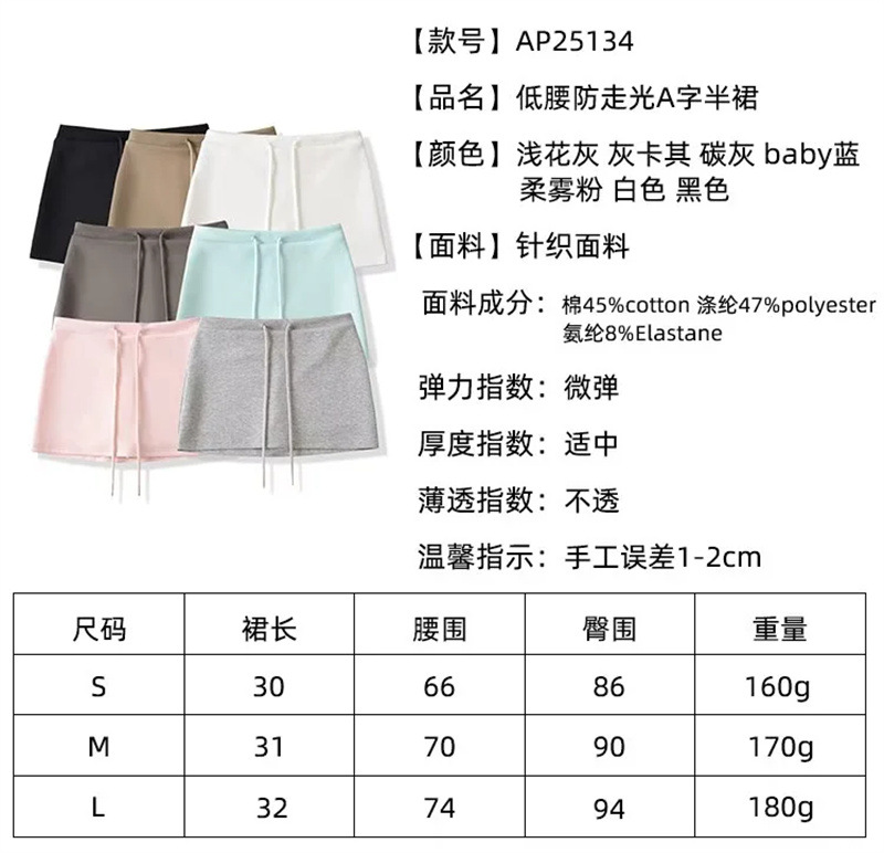 아메리칸 핫걸 로우 웨이스트 드로스트링 노출 방지 A라인 스커트 여름 신작 슬림핏 힙 커버 스커트 여성용 미니 스커트스토어 가기