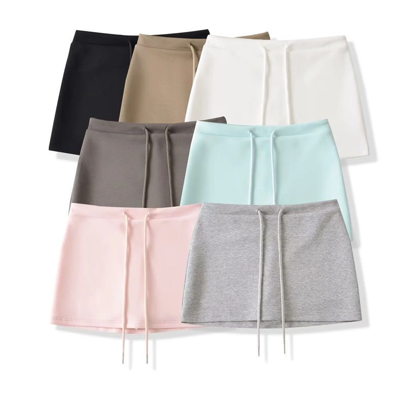 아메리칸 핫걸 로우 웨이스트 드로스트링 노출 방지 A라인 스커트 여름 신작 슬림핏 힙 커버 스커트 여성용 미니 스커트