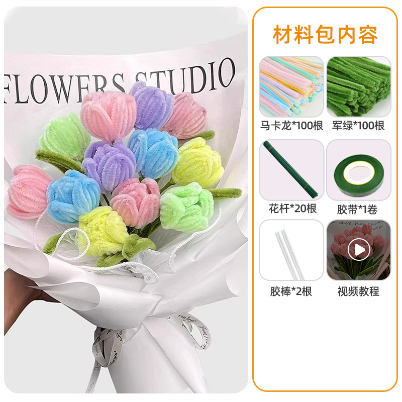 꼬임봉 꽃다발 DIY 어린이 뜨개질 풀세트 재료 패키지 유치원용 모직봉 도매 뉴뉴봉 교육용스토어 가기