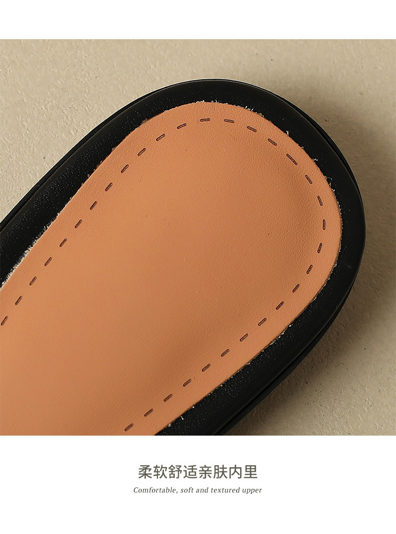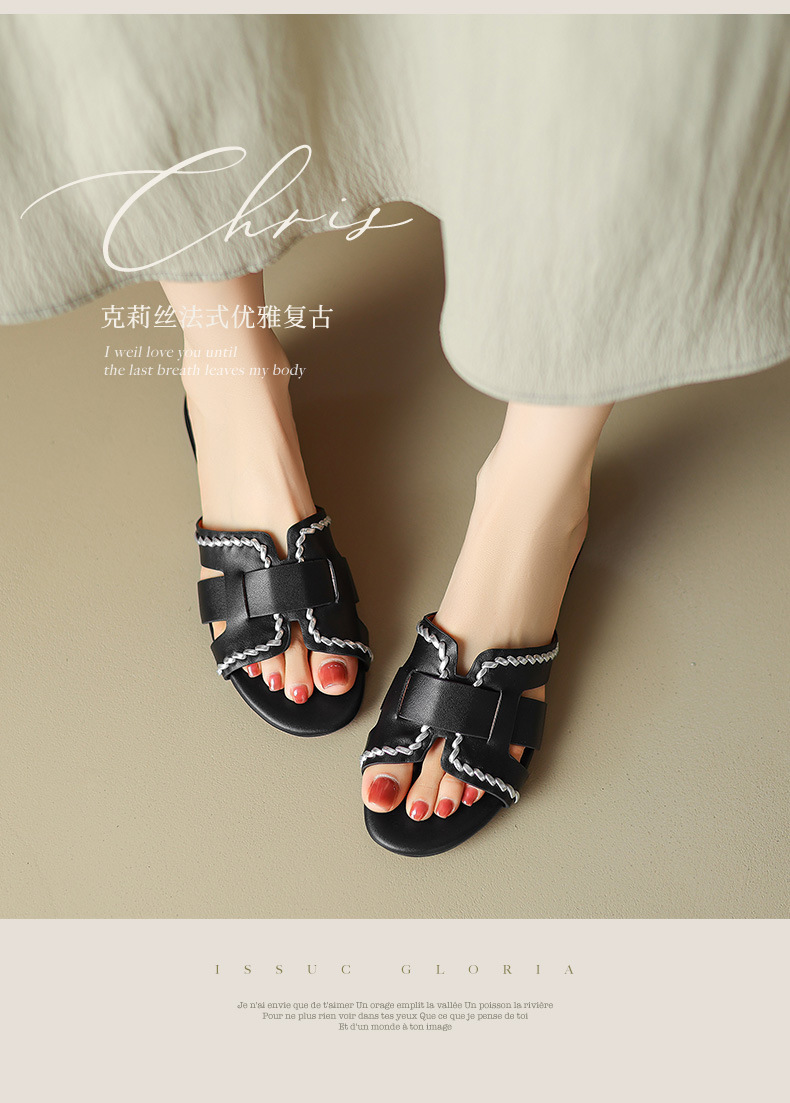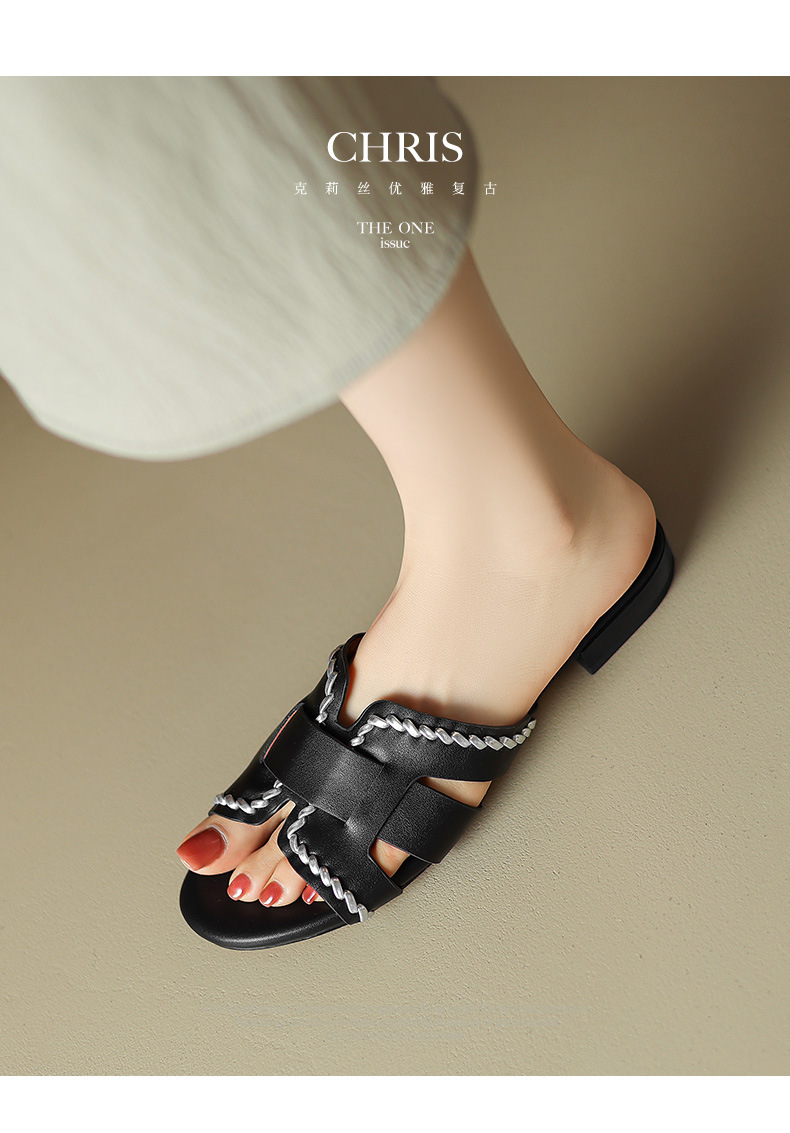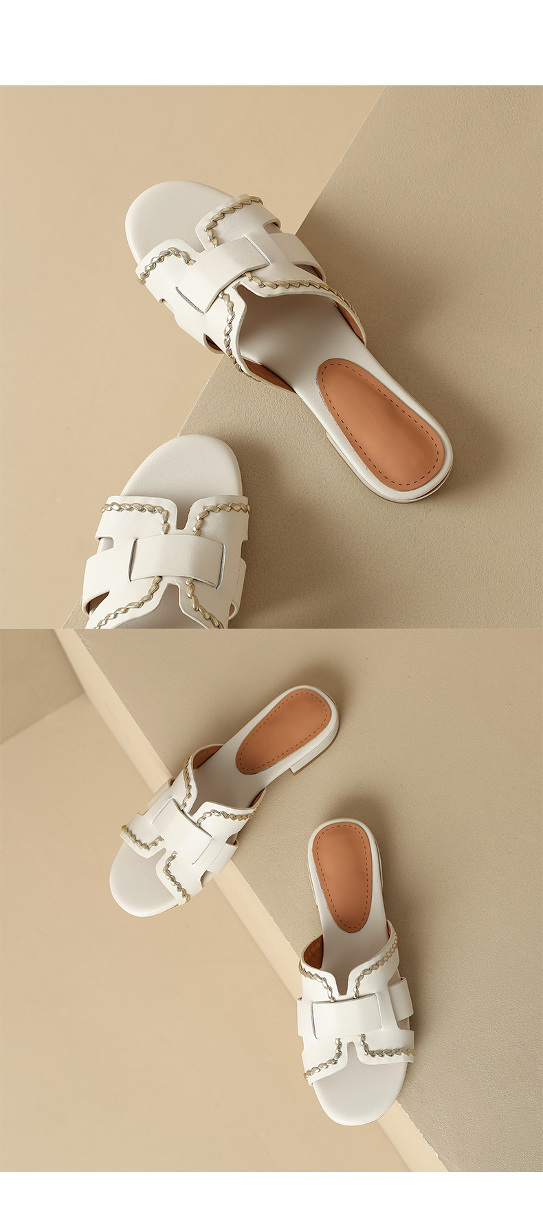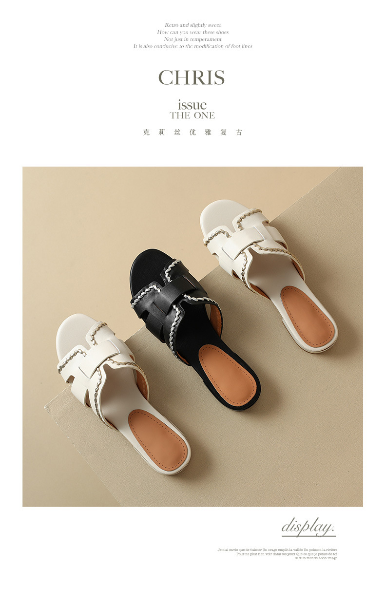 샌들과 슬리퍼 여성용 여름 라운드 토 로우 힐 플랫 슈즈 두꺼운 힐 가죽 아이보리 패션 33 사이즈 40 한 단어 슬리퍼스토어 가기