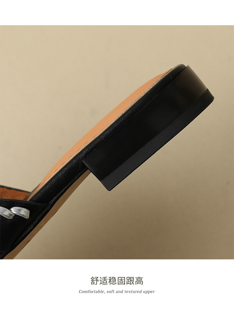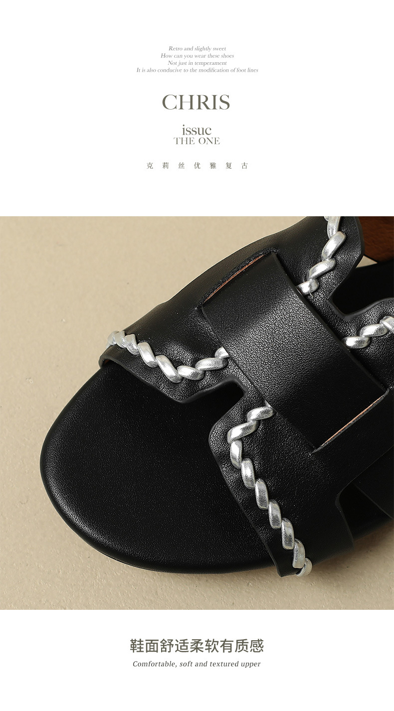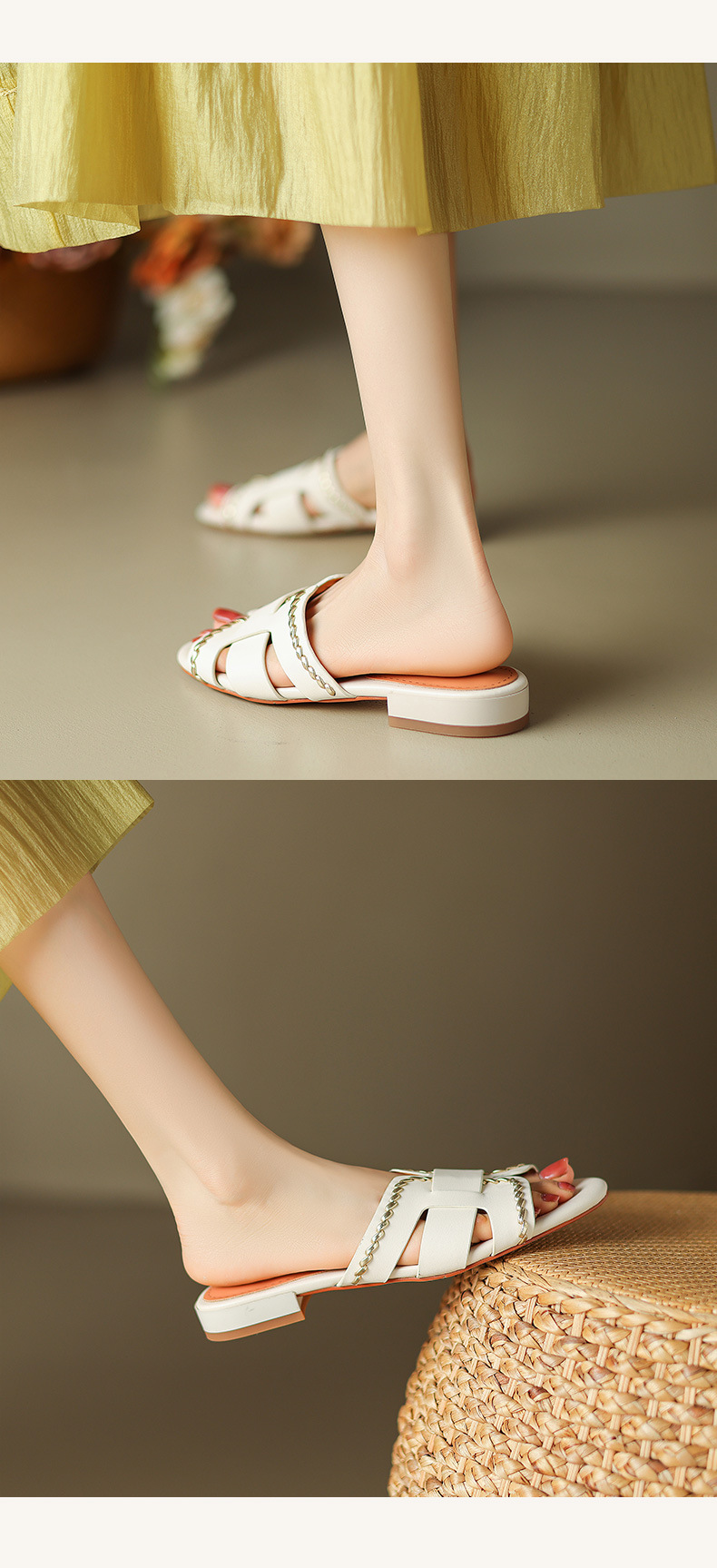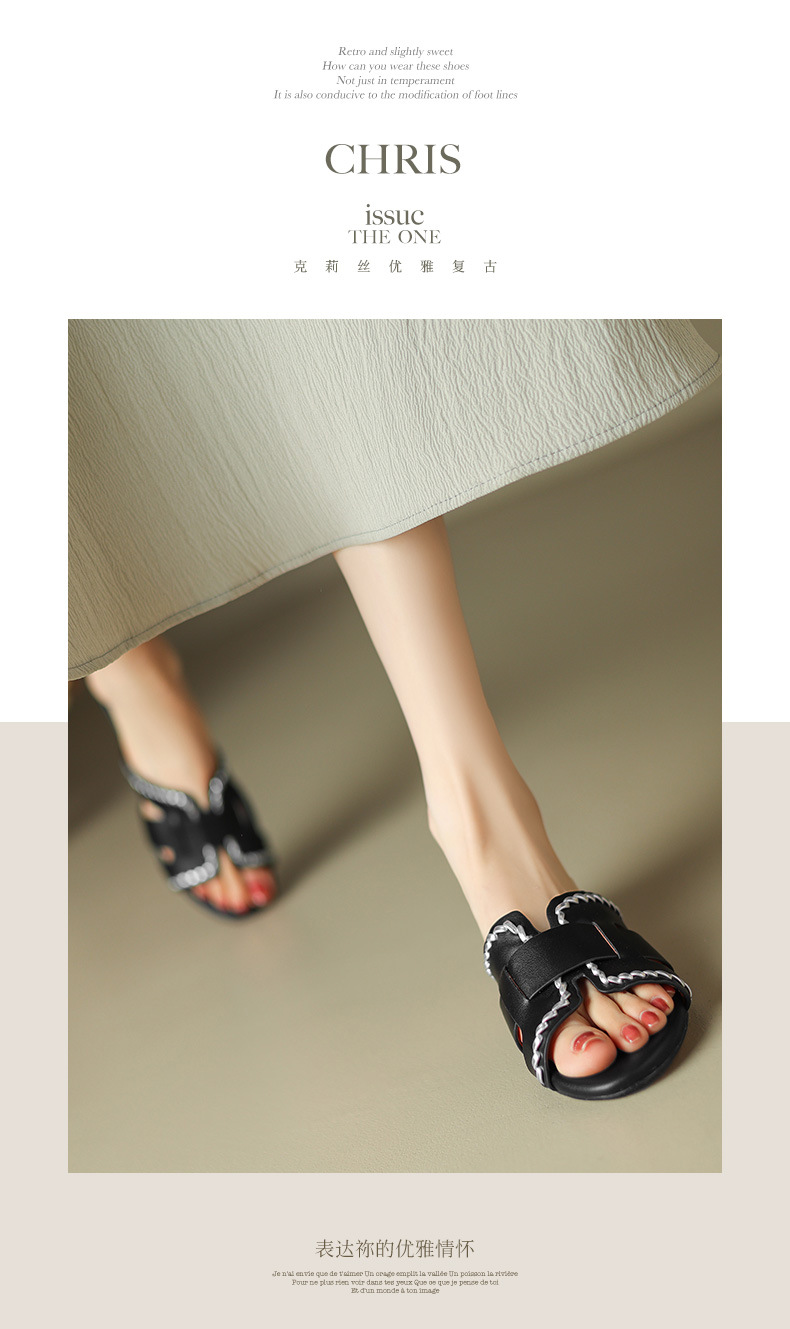 샌들과 슬리퍼 여성용 여름 라운드 토 로우 힐 플랫 슈즈 두꺼운 힐 가죽 아이보리 패션 33 사이즈 40 한 단어 슬리퍼스토어 가기