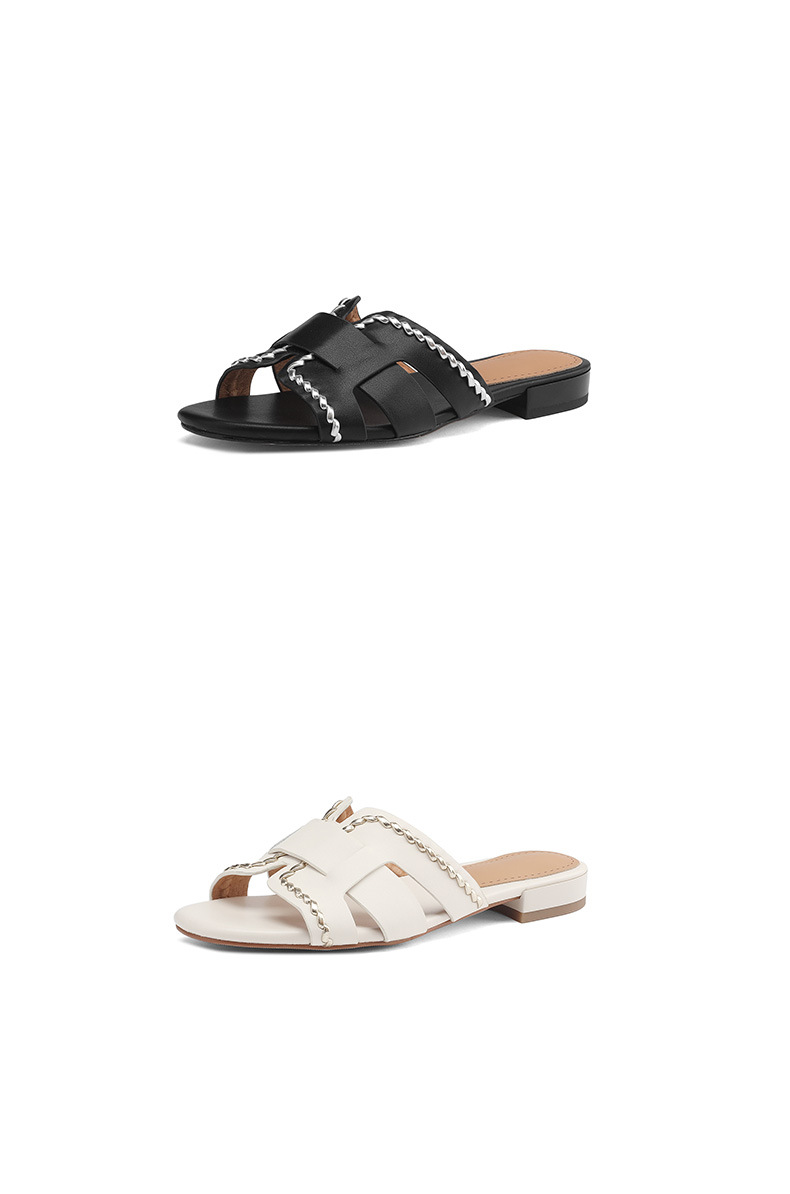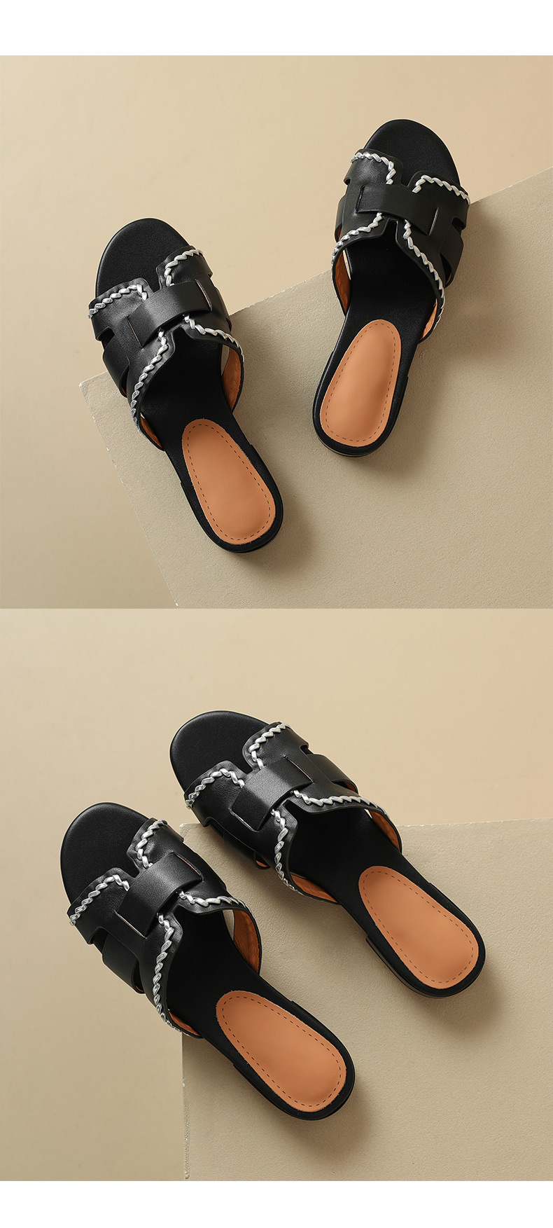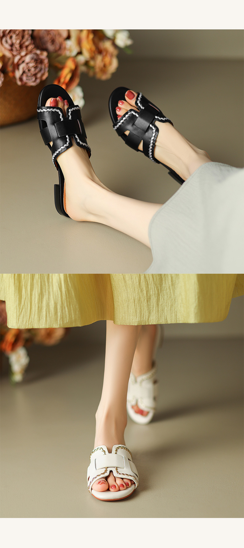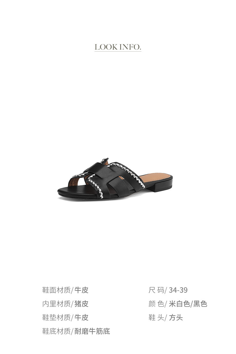 샌들과 슬리퍼 여성용 여름 라운드 토 로우 힐 플랫 슈즈 두꺼운 힐 가죽 아이보리 패션 33 사이즈 40 한 단어 슬리퍼스토어 가기