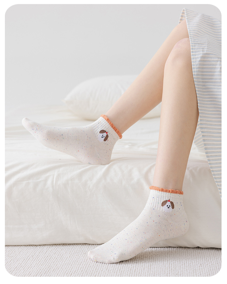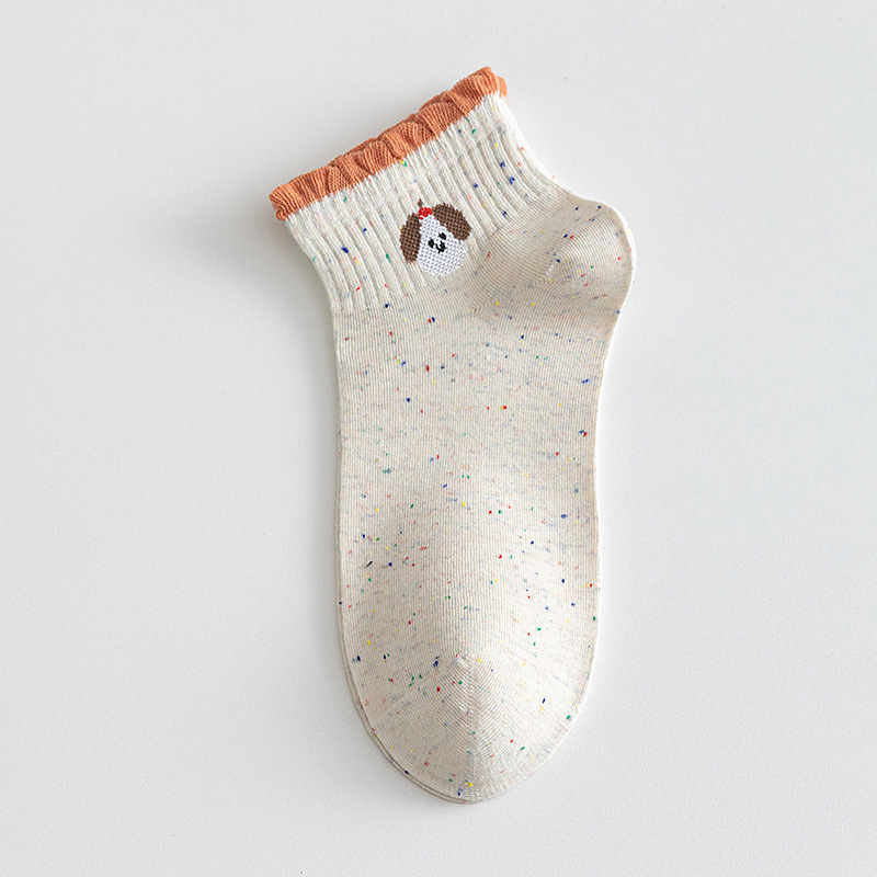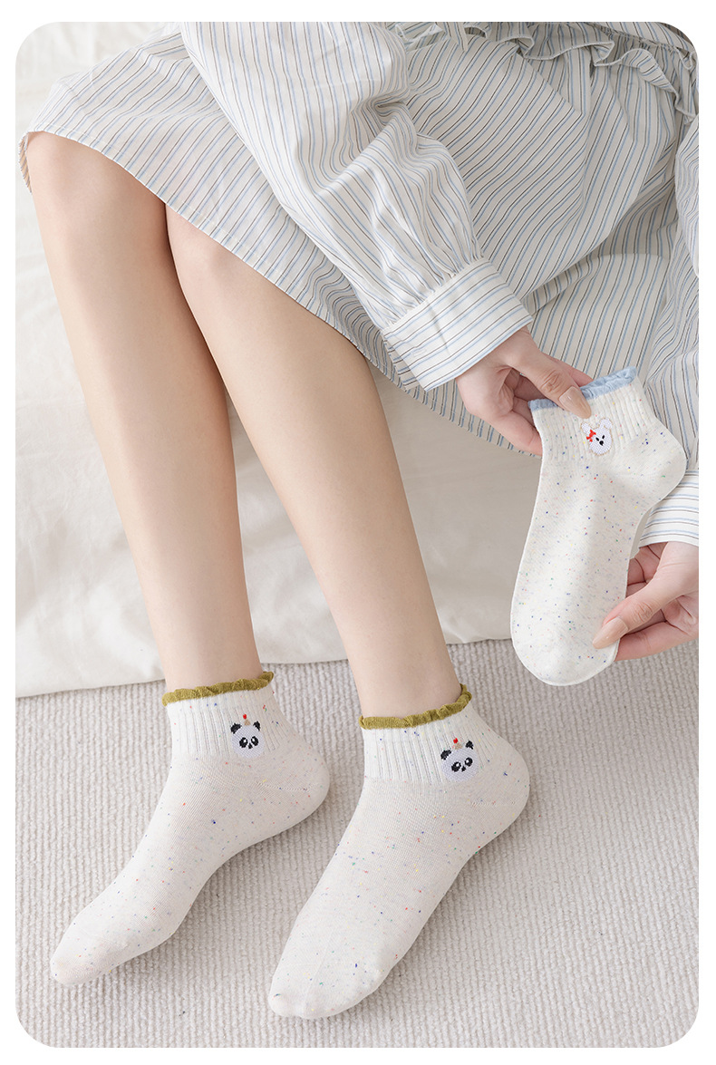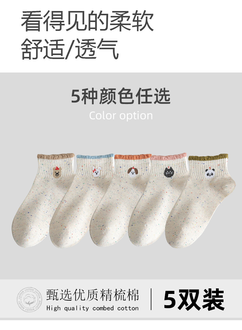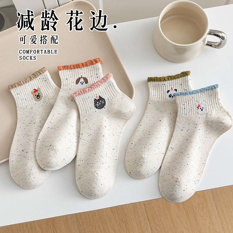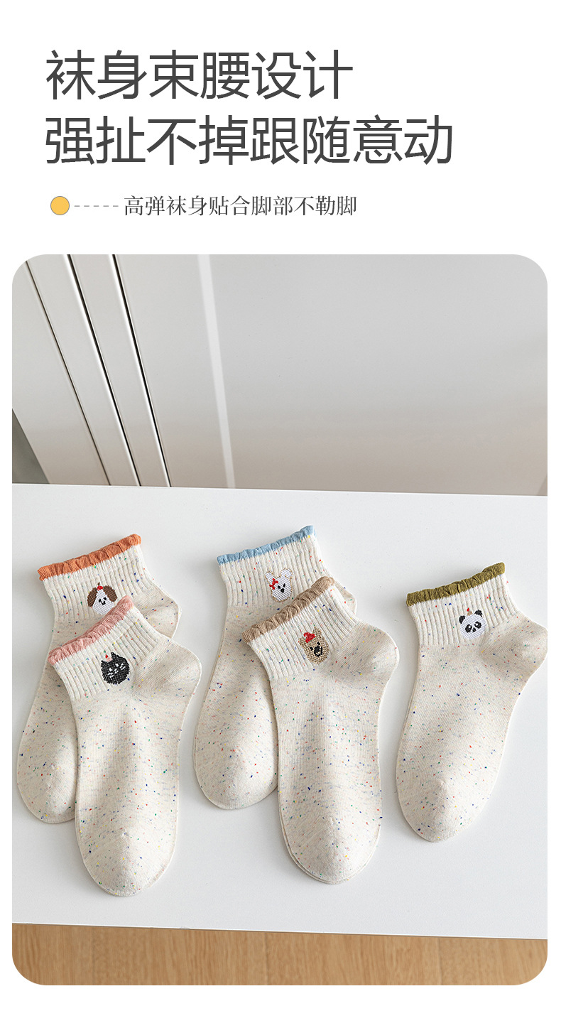 여름 귀여운 포인트 원사 동물 양말 만화 여성 양말 짧은 양말 여성을위한 면 양말과 얇은 통기성 얕은 양말