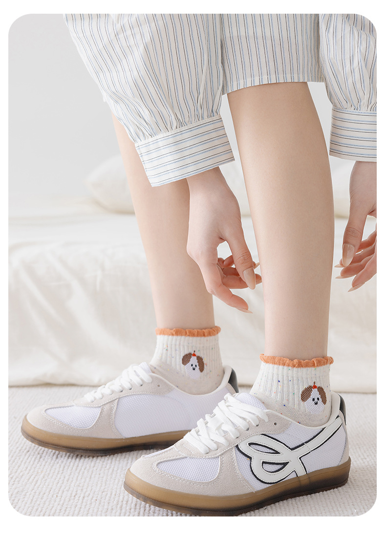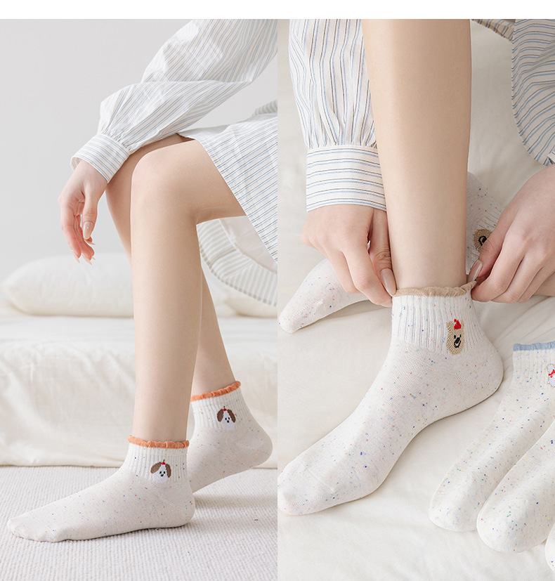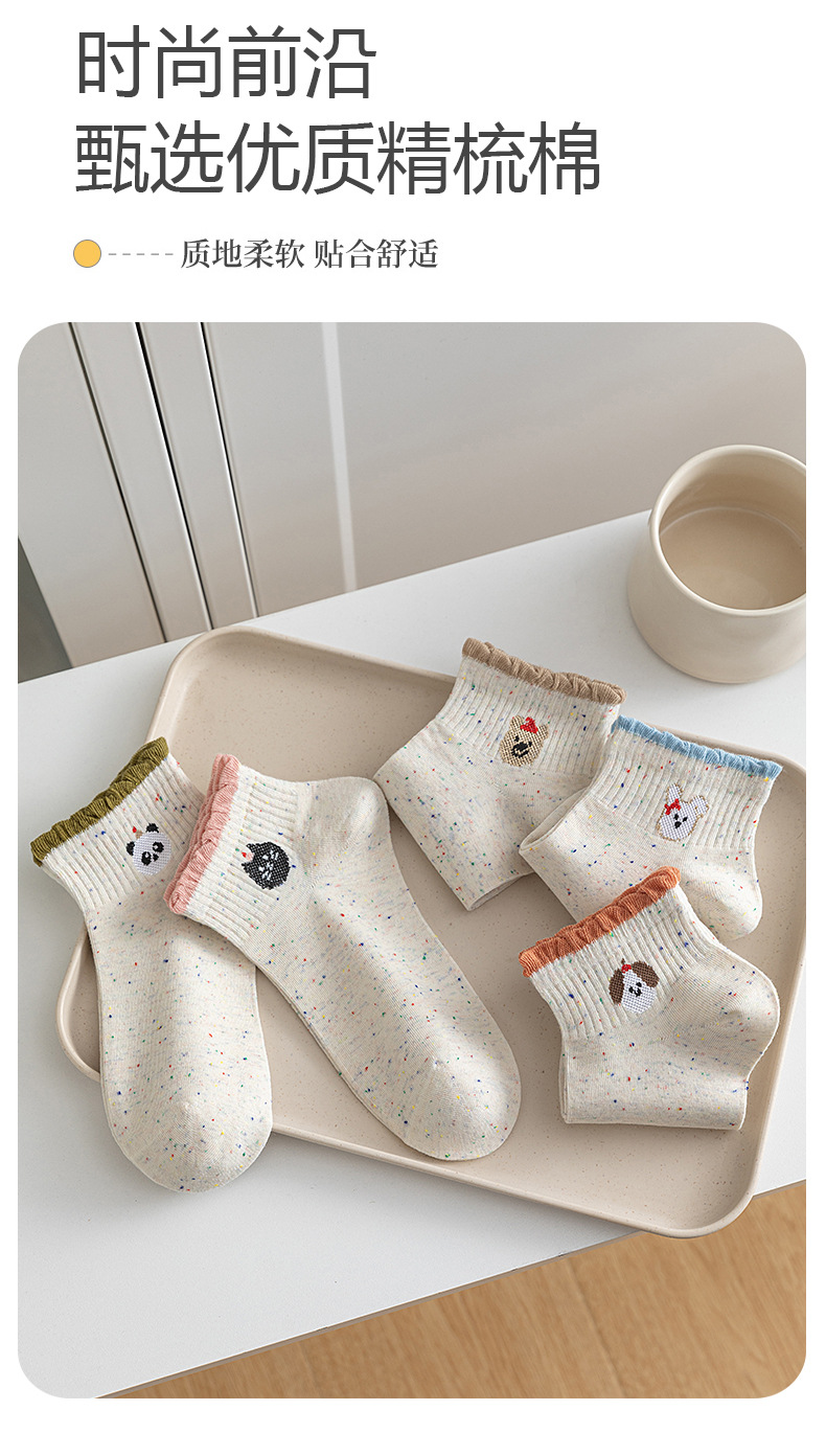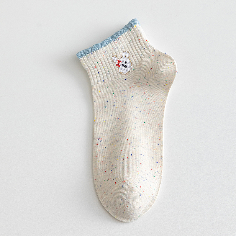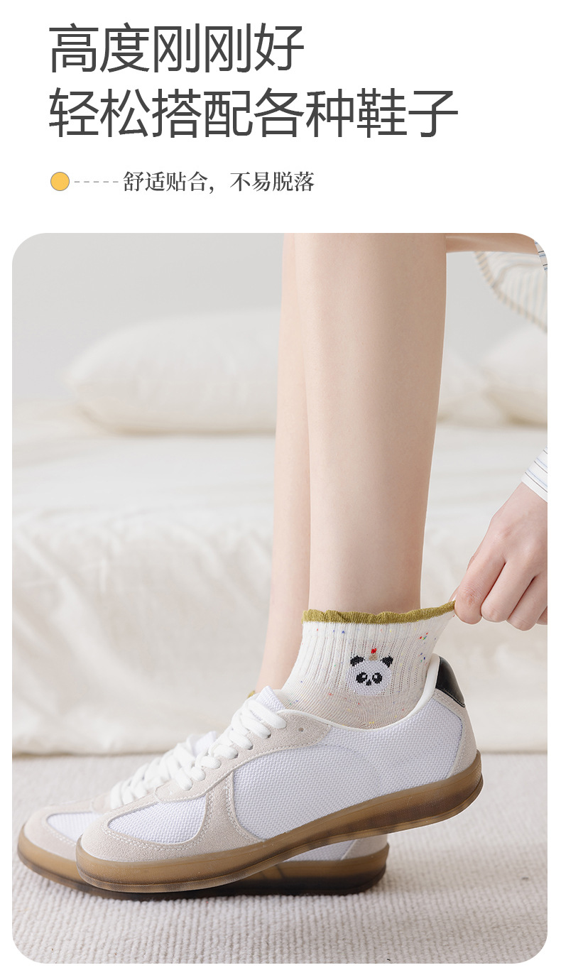 여름 귀여운 포인트 원사 동물 양말 만화 여성 양말 짧은 양말 여성을위한 면 양말과 얇은 통기성 얕은 양말