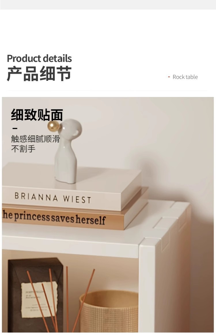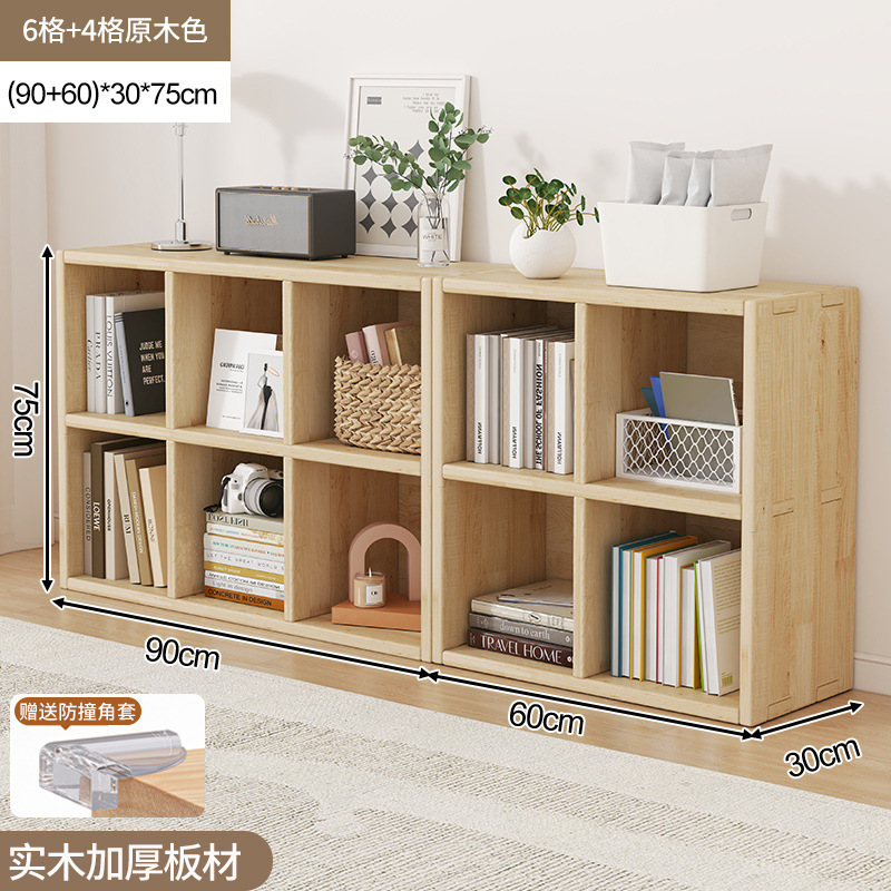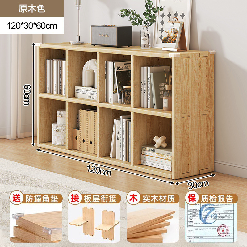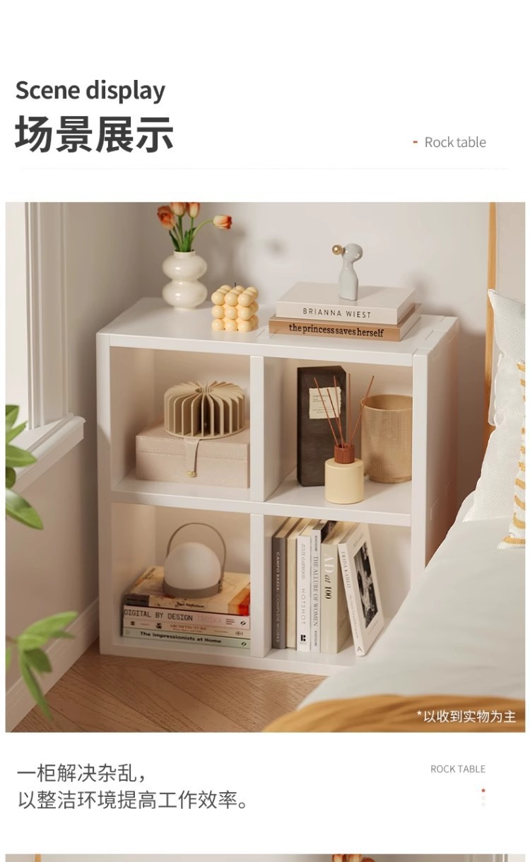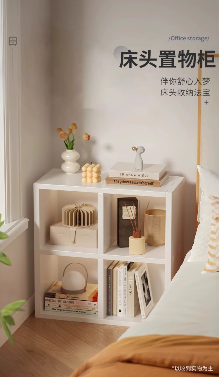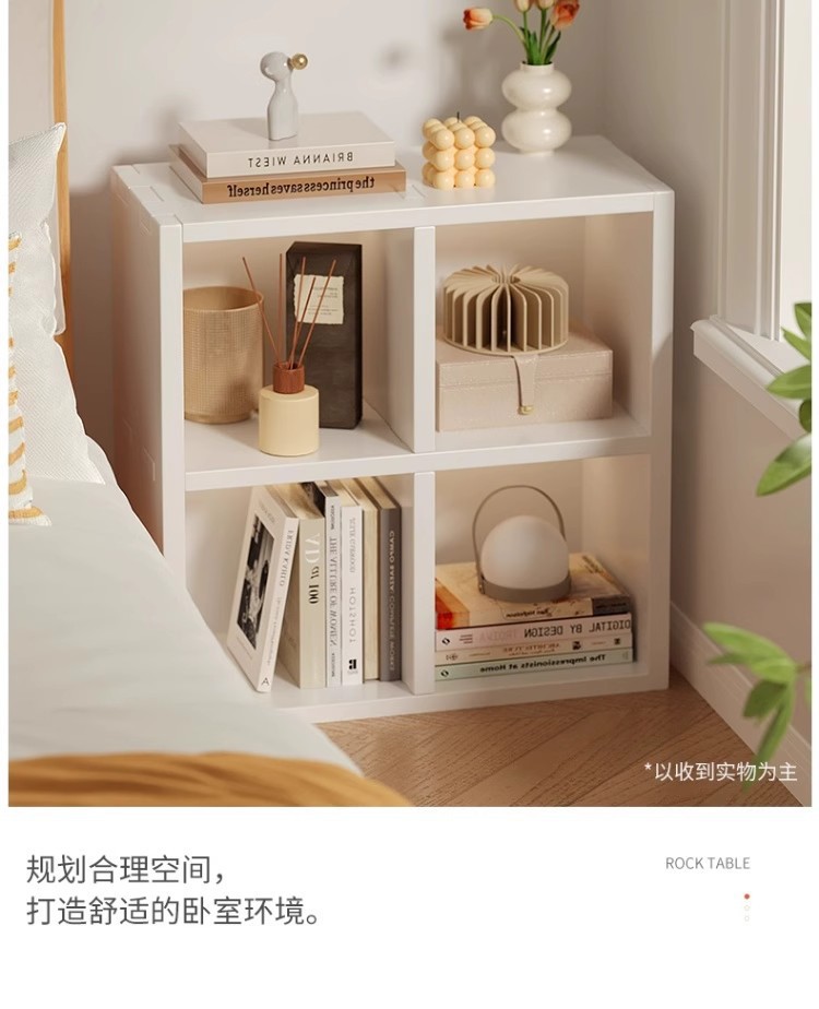 全实木奶油风床头置物架落地格子收纳储物柜卧室床边靠墙矮柜书架