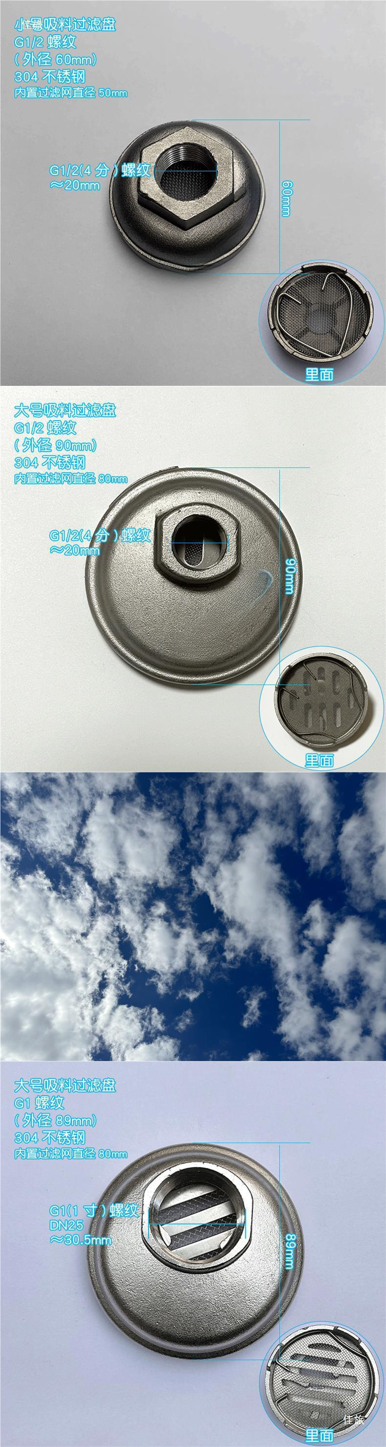 • Baoli 대형 스테인레스 스틸 필터 흡입 컵 ~ G1/2 스레드 일반적으로 4 포인트로 알려져 있음