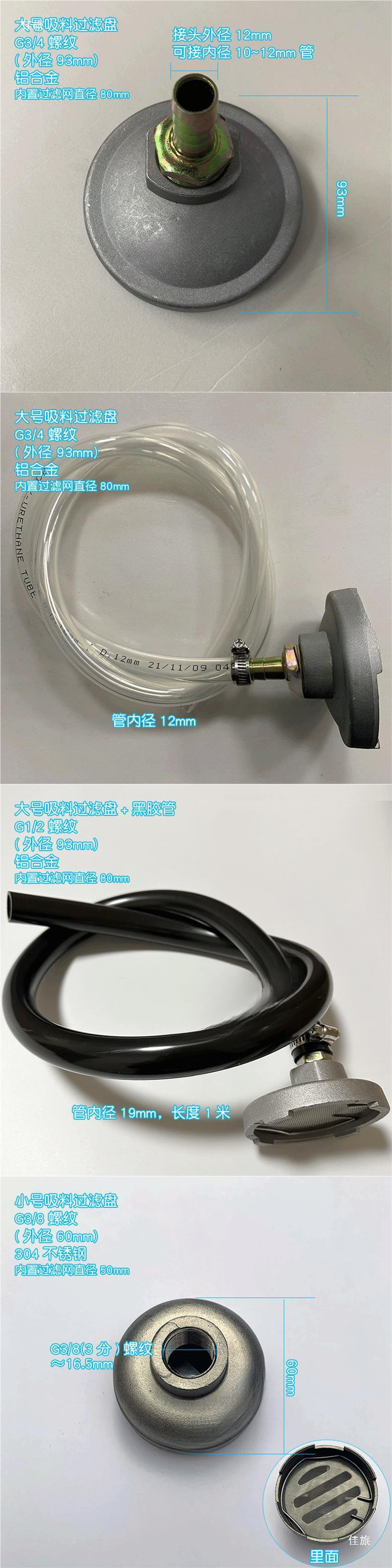 • 대형 알루미늄 G1/2 필터 흡입 컵 + 커넥터 + 튜브
