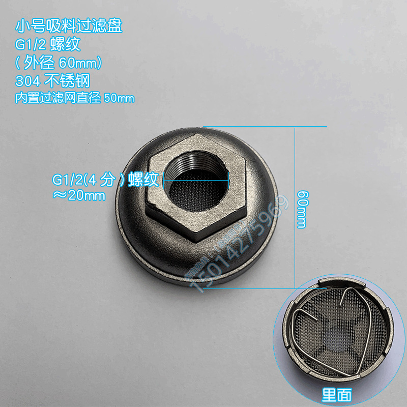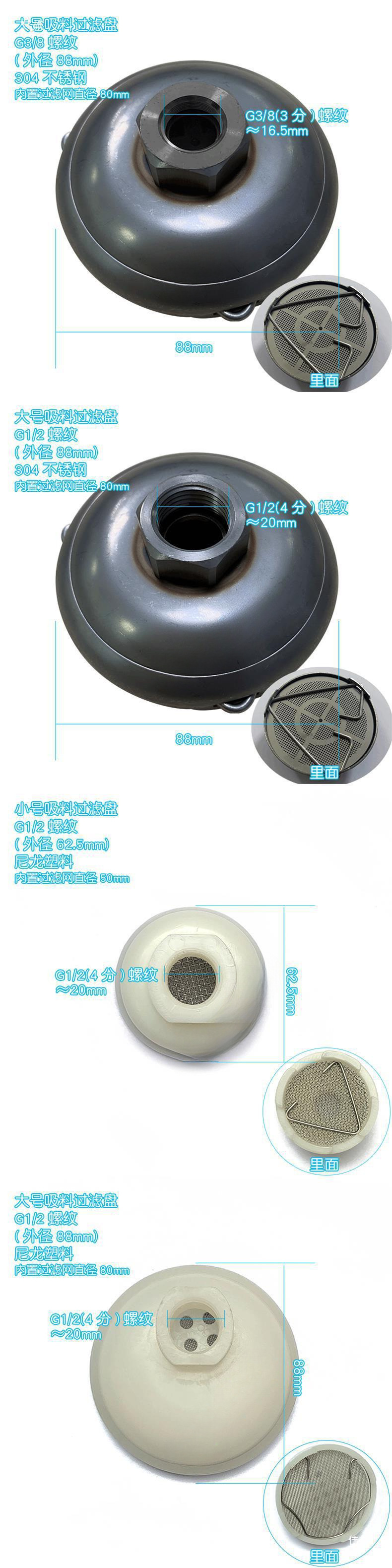 • 소형 스테인레스 필터 흡입 컵 ~ G1/2 나사, 일반적으로 4점으로 알려짐