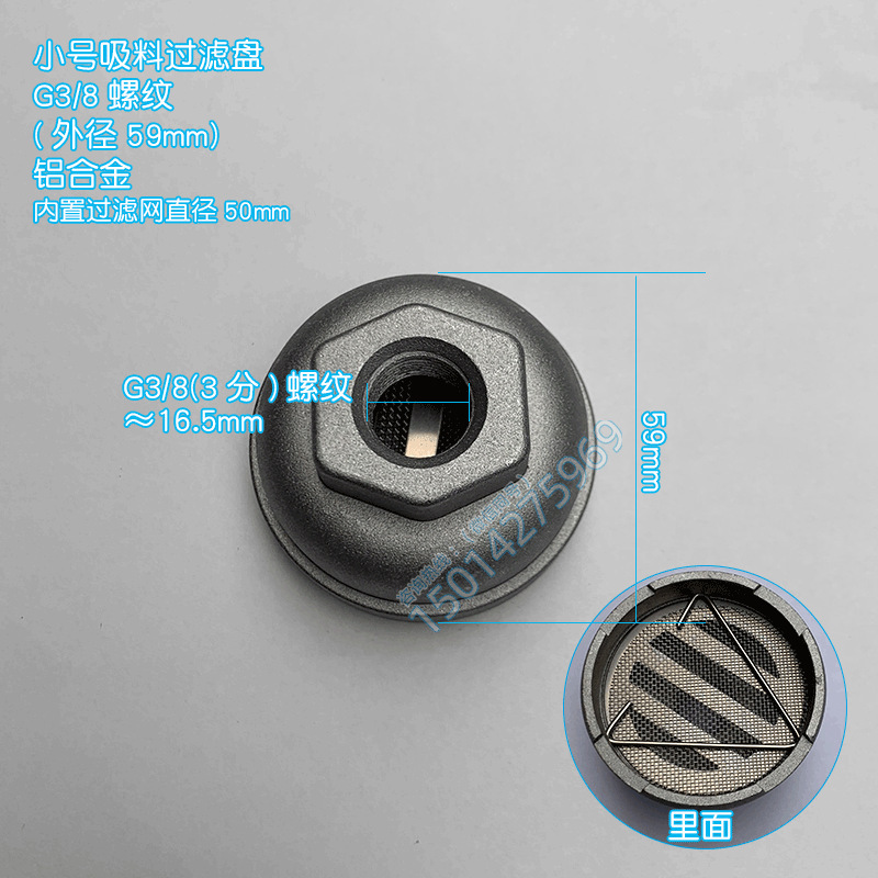 • 소형 알루미늄 필터 흡입 컵 ~ G3/8 나사, 일반적으로 3점으로 알려짐