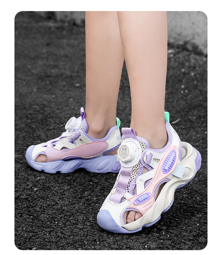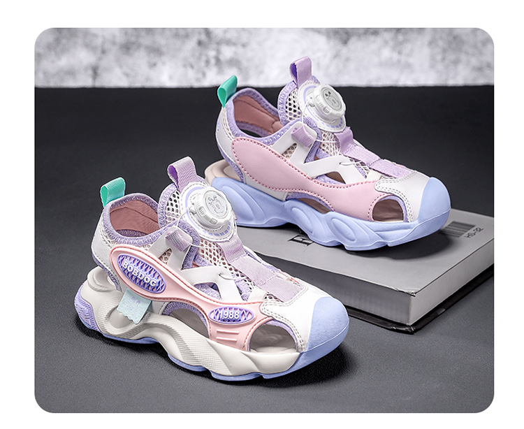 Babu Bean Girls 'Beach Shoes 여름 새로운 스타일 중 큰 소년 부드러운 밑바닥 비 슬립 아동용 샌들 버튼