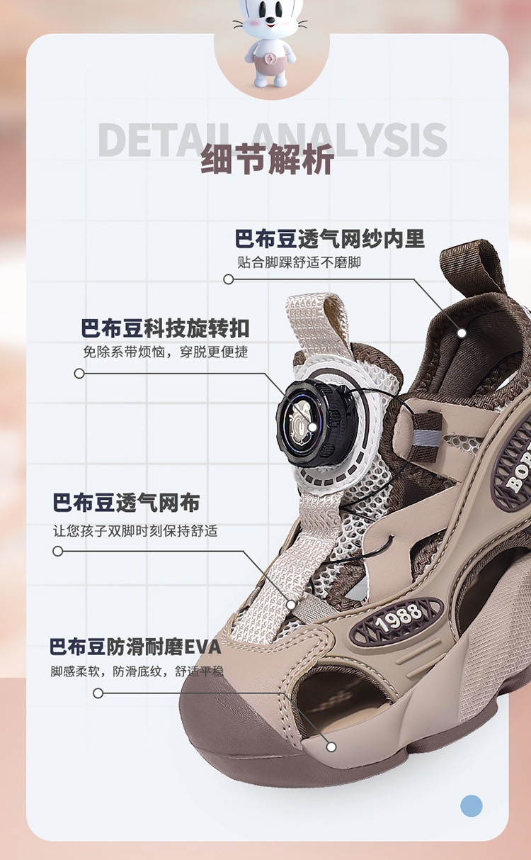 Babu Bean Girls 'Beach Shoes 여름 새로운 스타일 중 큰 소년 부드러운 밑바닥 비 슬립 아동용 샌들 버튼스토어 가기