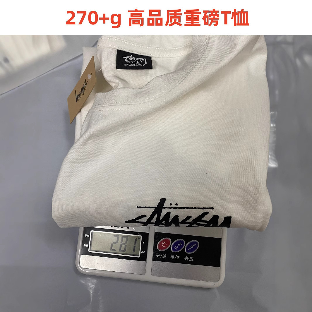 stu 대외 무역 오픈 품질 2025 새로운 Stussy 귀여운 반팔 남성 티셔츠 270g 무거운 고품질 남성