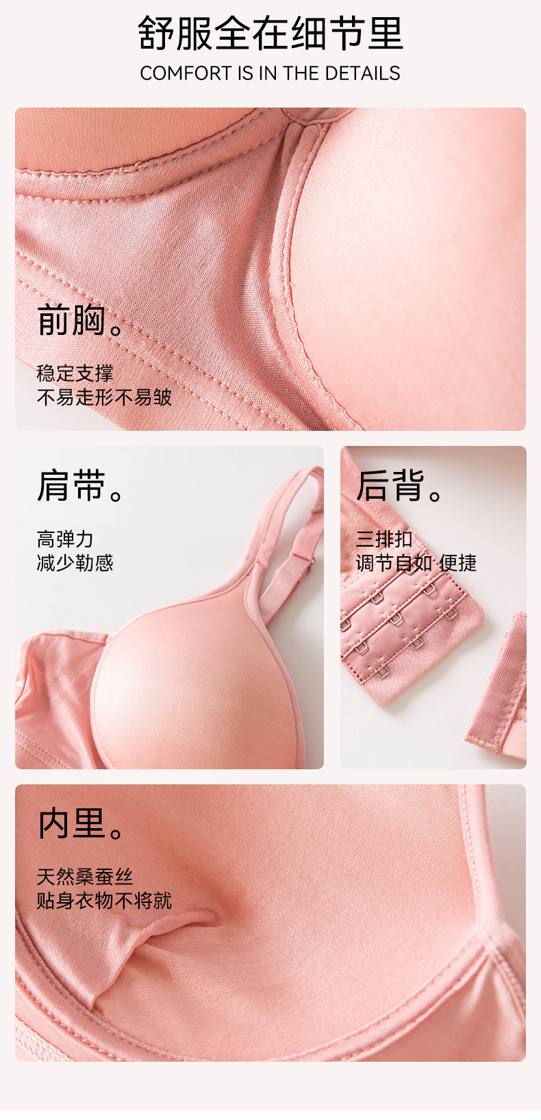 젤리 편안한 누드 느낌의 여성용 무봉제 멀버리 실크 속옷 2025 가슴 리프팅 소프트 서포트 보이지 않는 작은 가슴 중간 얇은 컵 브라