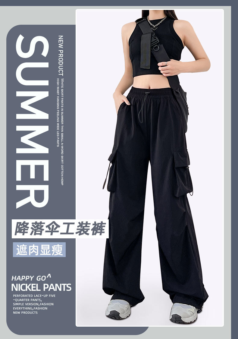 빠른 건조 작업복 여성 여름 얇은 바지 작은 사람들을위한 미국 캐주얼 스포츠 바지 직선 낙하산 하이킹 바지