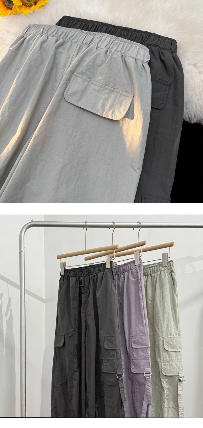 회색 미국 기능성 크레인 바지 여성의 2025 새로운 봄과 여름 높은 허리 짧은 낙하산 빠른 건조 캐주얼 바지