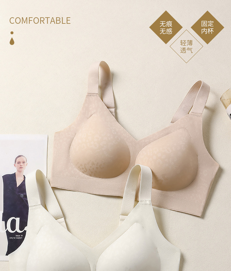 Jacquard Tracless 속옷 여성의 작은 가슴 푸시 업 방지 젤리 고정 컵 무테 브라 얇은스토어 가기