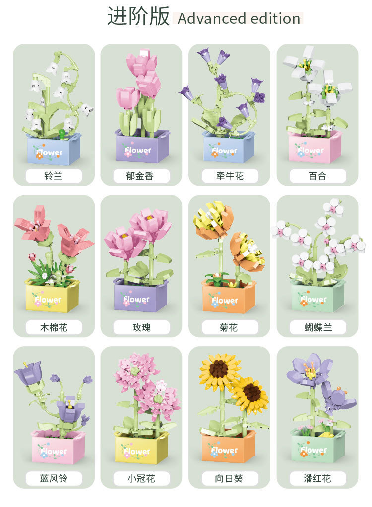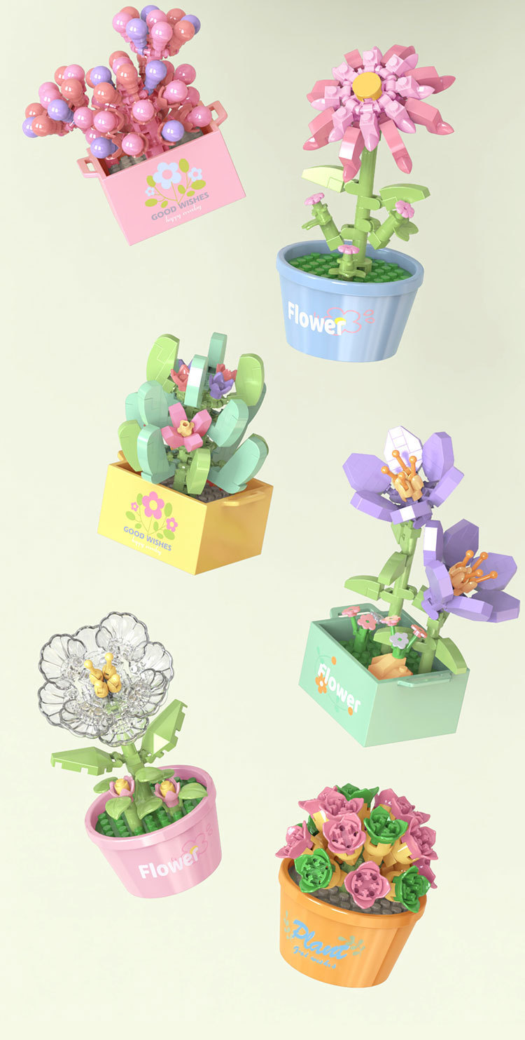 레고 블록 꽃과 호환 어린이 교육 조립 시뮬레이션 영원한 꽃 꽃 꽃 다육 화분 장난감 선물 도매