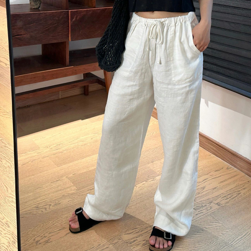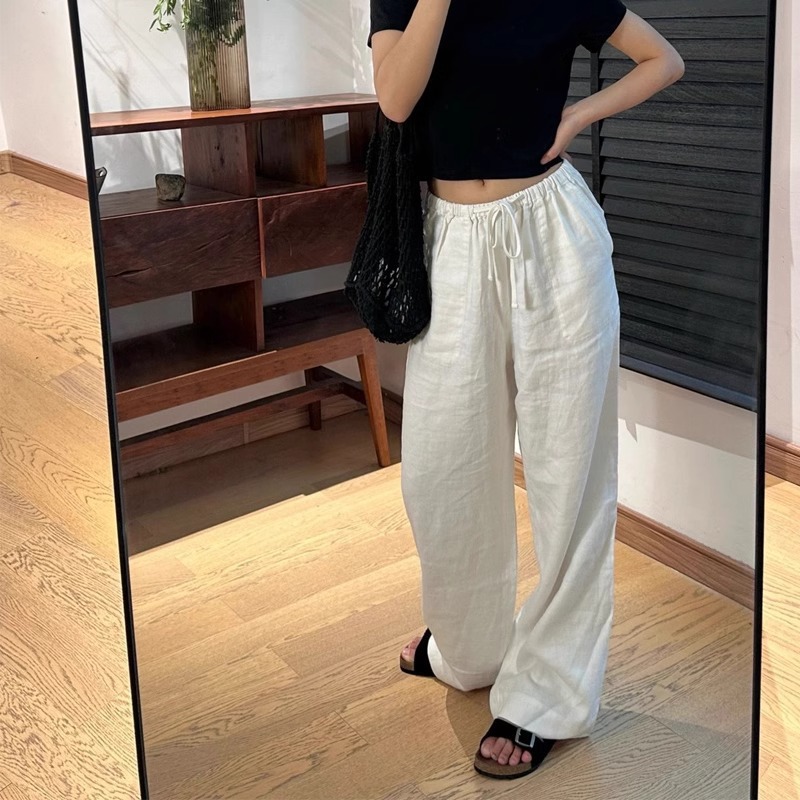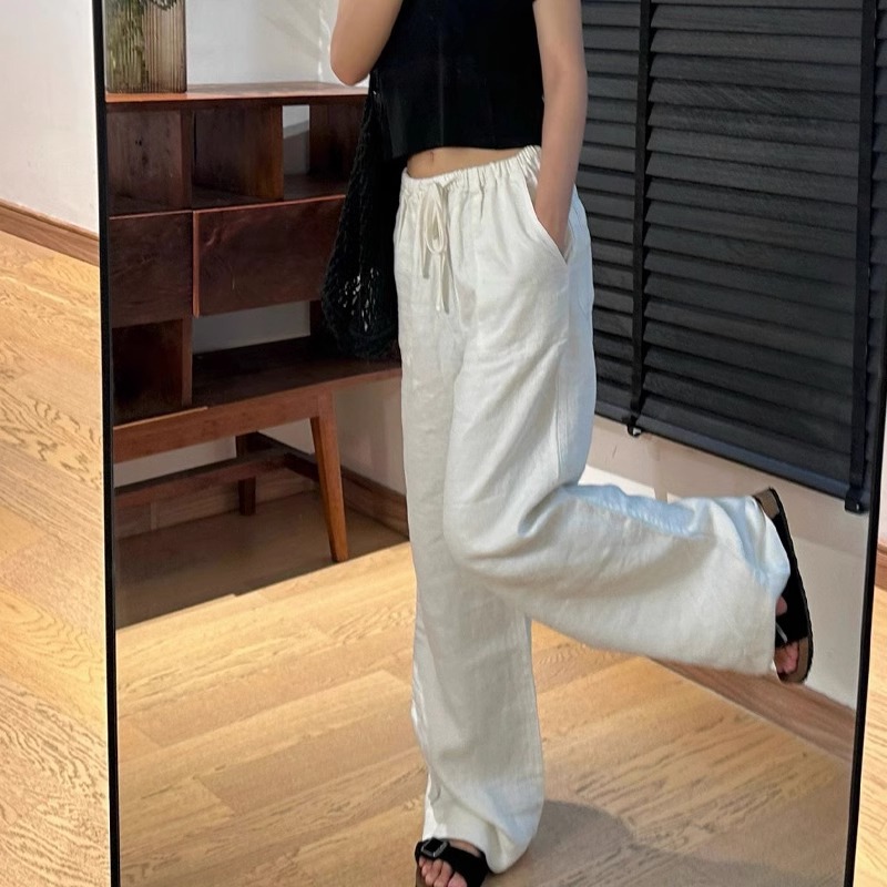 흰색면과 린넨 바지 여성용 여름 얇은 일본식 느슨한 캐주얼 스트레이트 바지 린넨 와이드 레그 바지