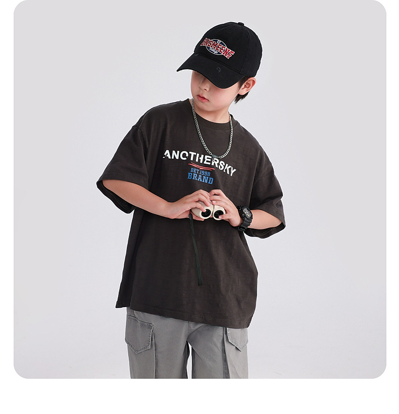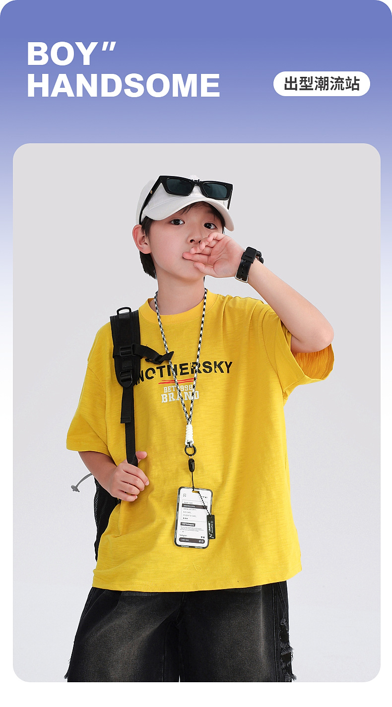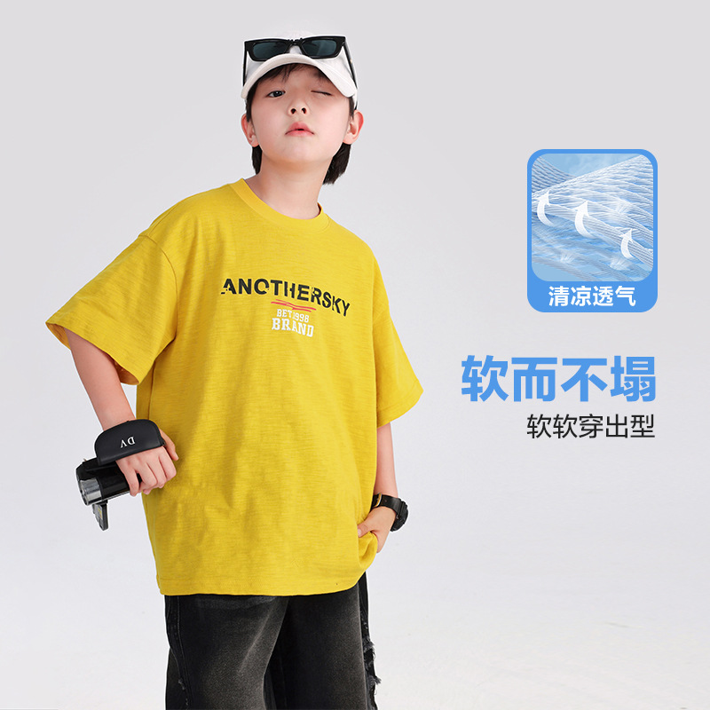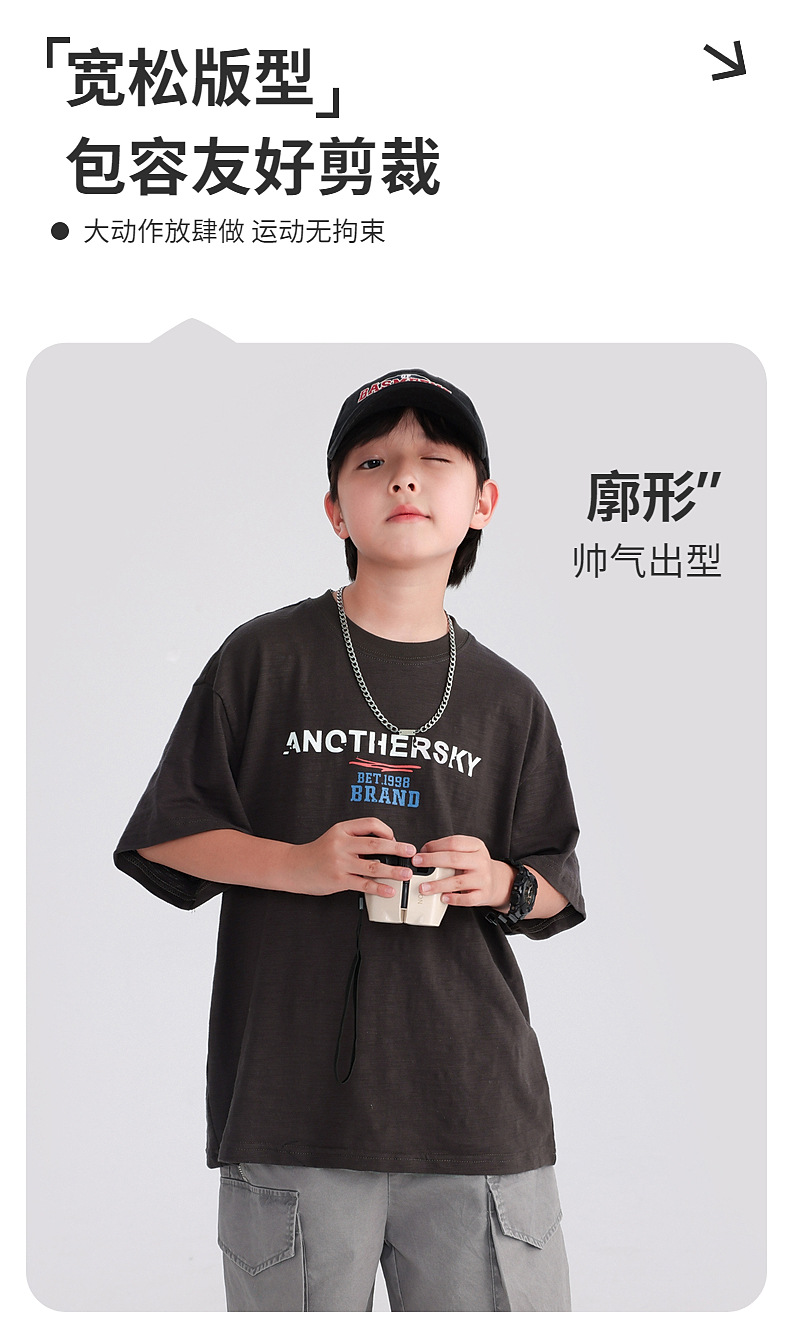 소년 여름 도파민 코튼 반팔 티셔츠 2025 새로운 십대 어린이 여름 반소매 아이스 탑스토어 가기