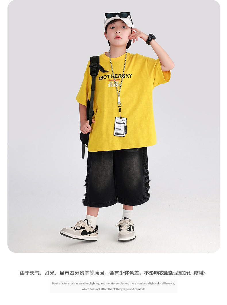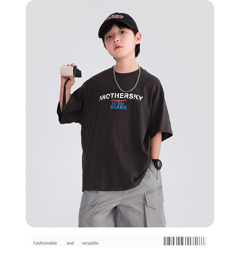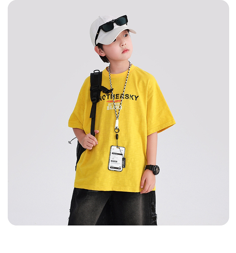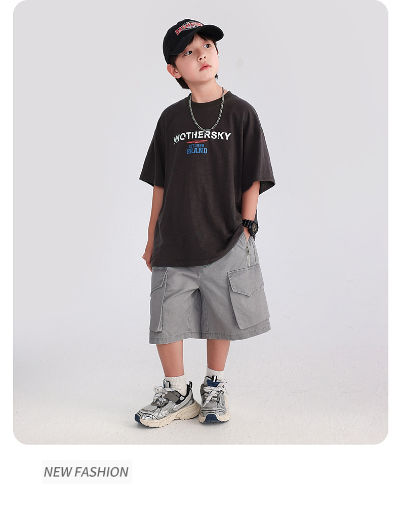 소년 여름 도파민 코튼 반팔 티셔츠 2025 새로운 십대 어린이 여름 반소매 아이스 탑스토어 가기