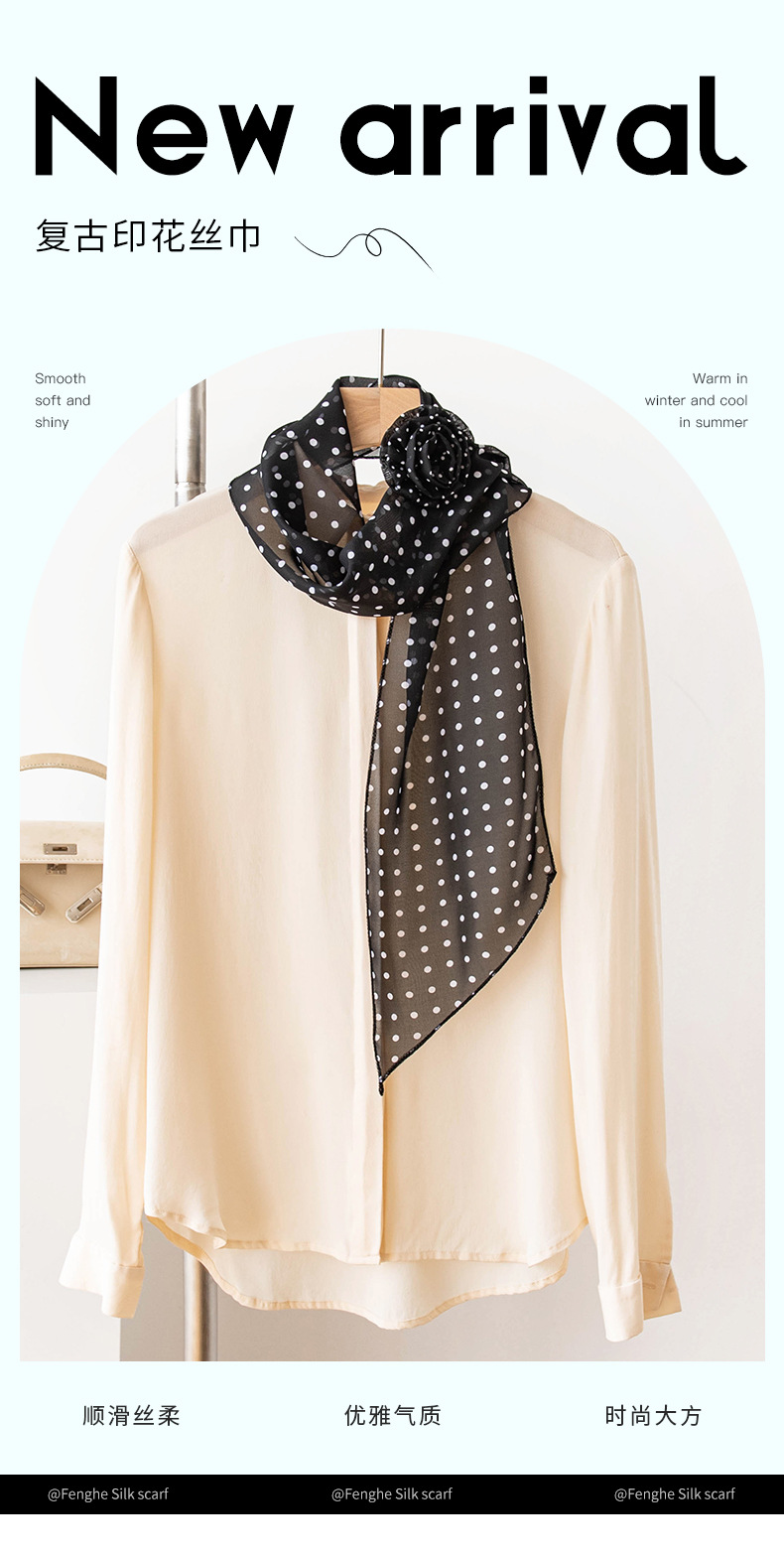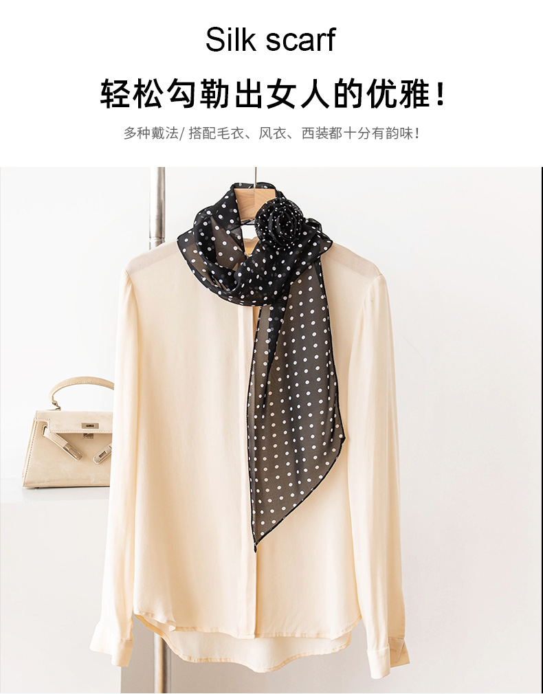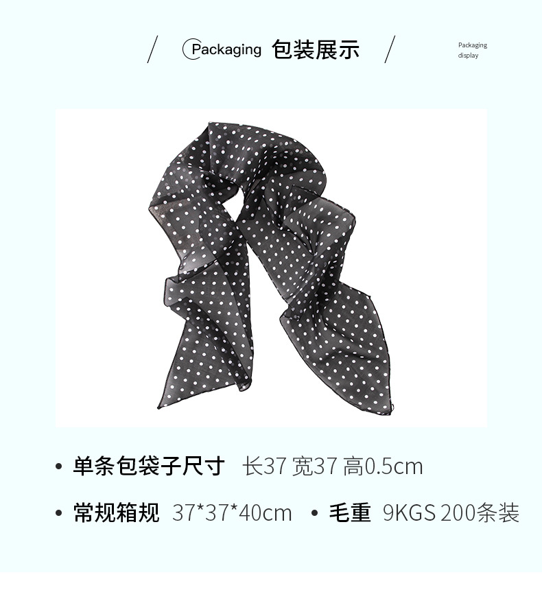 한국 스타일의 분위기 있는 블랙 물방울 무늬 머리띠 스카프, 고급스러운 롱 스카프, 얇고 긴 스카프, 목에 묶는 스카프스토어 가기