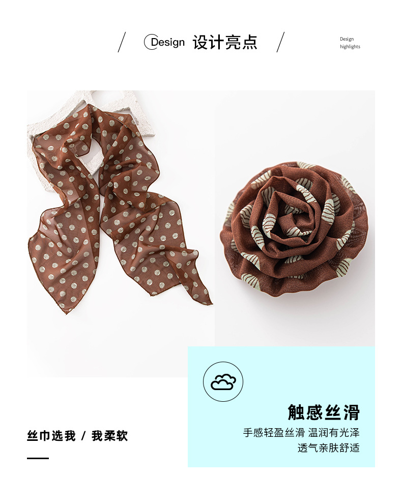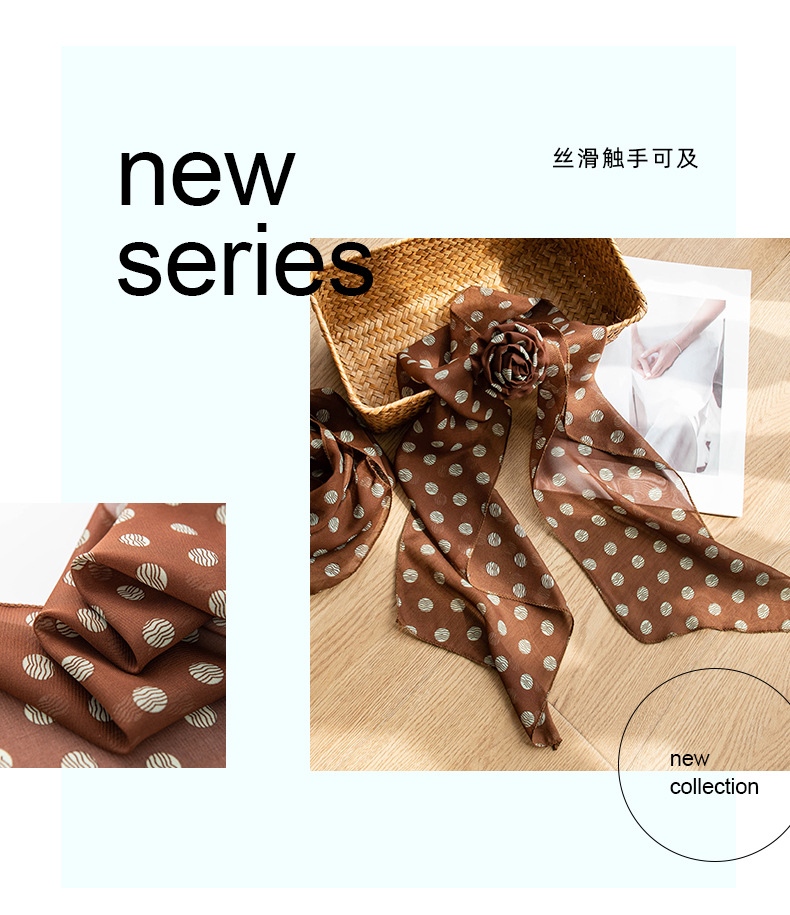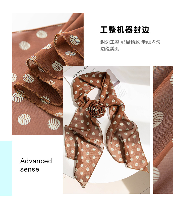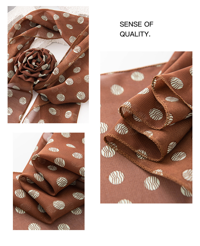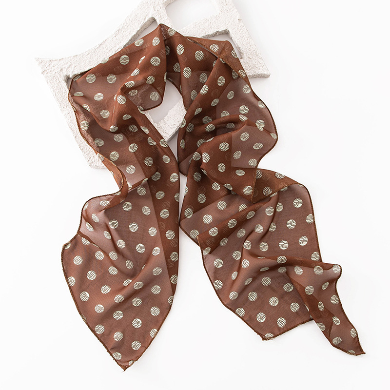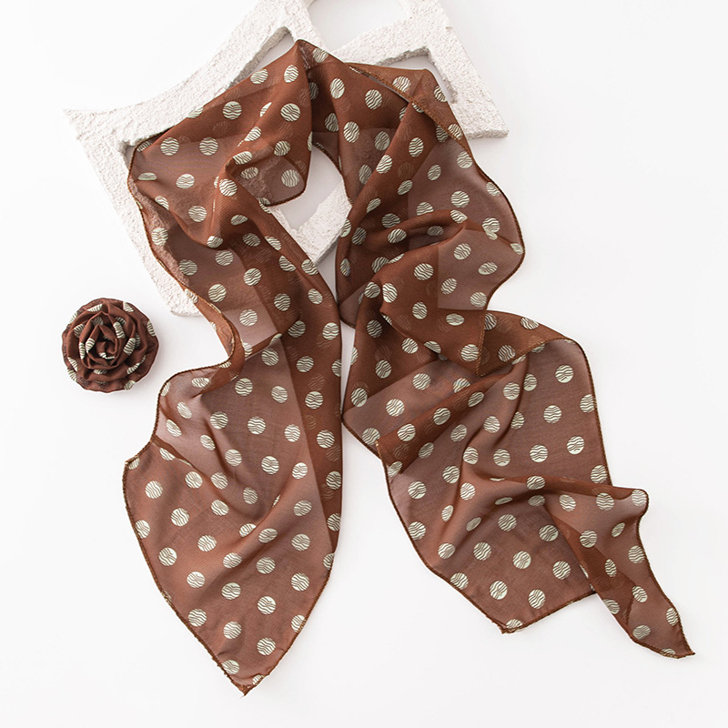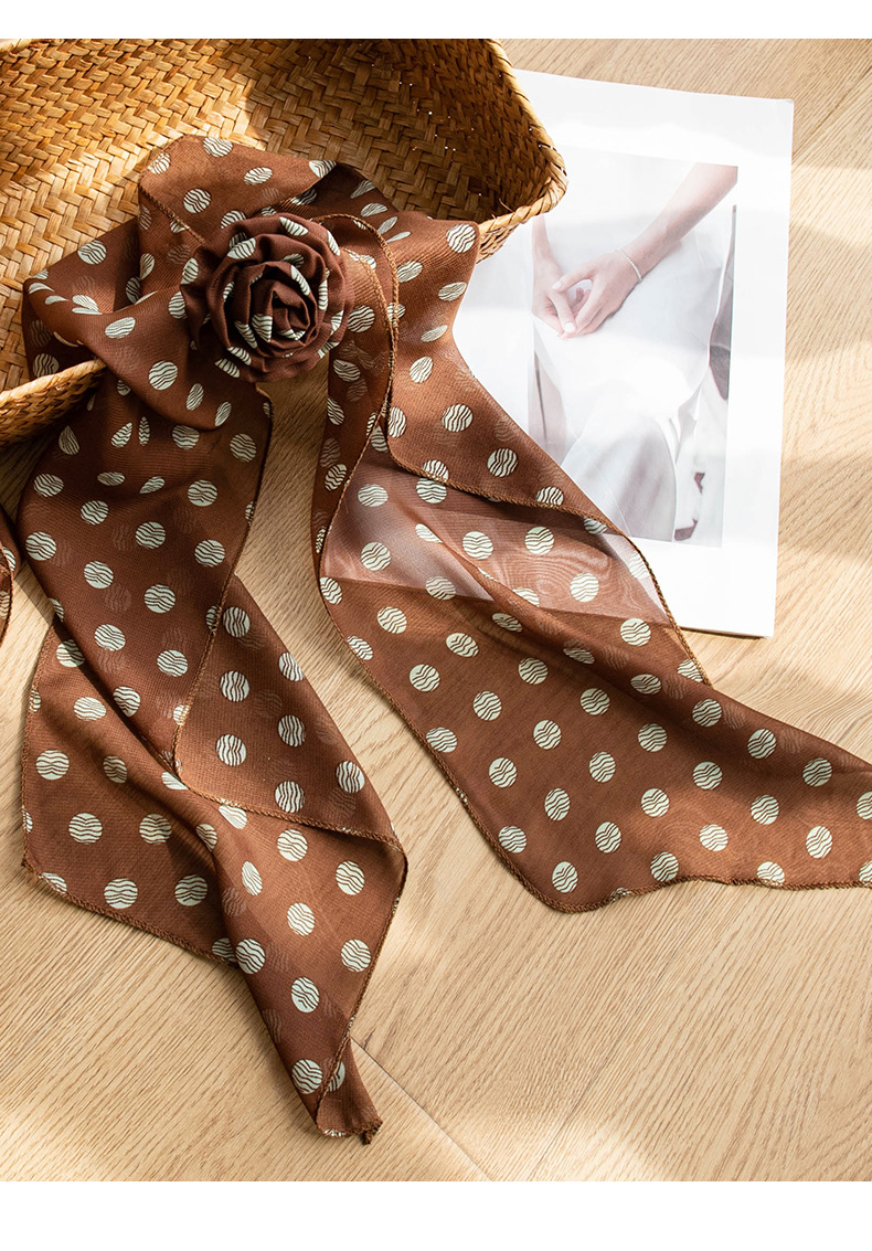 한국 스타일의 분위기 있는 블랙 물방울 무늬 머리띠 스카프, 고급스러운 롱 스카프, 얇고 긴 스카프, 목에 묶는 스카프