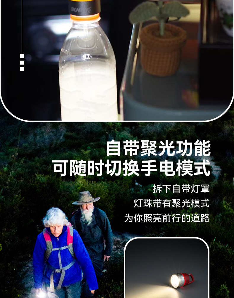 Sanlux 야외 캠핑 및 하이킹 편리한 멀티 시나리오 물병 램프 교수형 램프 스포트라이트 손전등스토어 가기