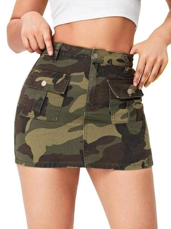 봄과 여름 새로운 위장 엉덩이에 꼭 맞는 높은 허리 슬리밍 멀티 포켓 데님 미니 스커트 다목적 핫 걸 스타일 18068스토어 가기