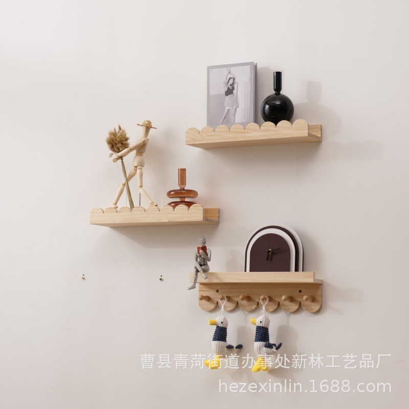 현대 간단한 가정용 거실 나무 저장 랙 벽걸이 벽 장식 랙 재고 레이스 솔리드 우드 스토리지 랙