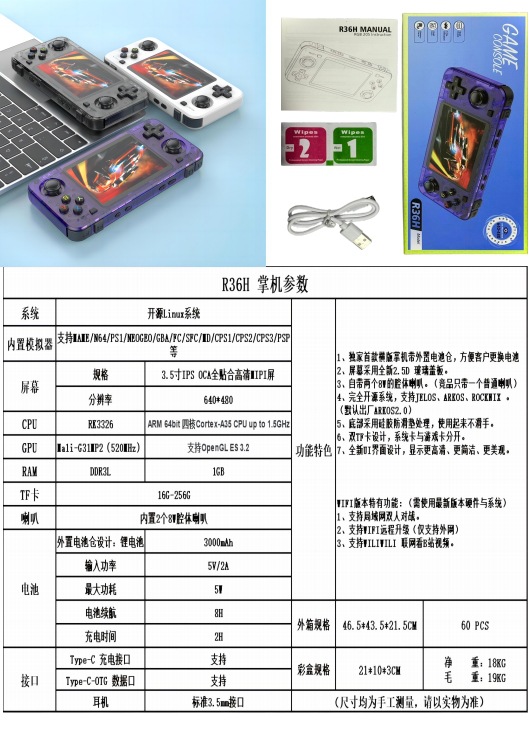 2025 새로운 7 색 국경 간 R36H 오픈 소스 휴대용 게임 콘솔 휴대용 복고풍 휴대용 게임 향수