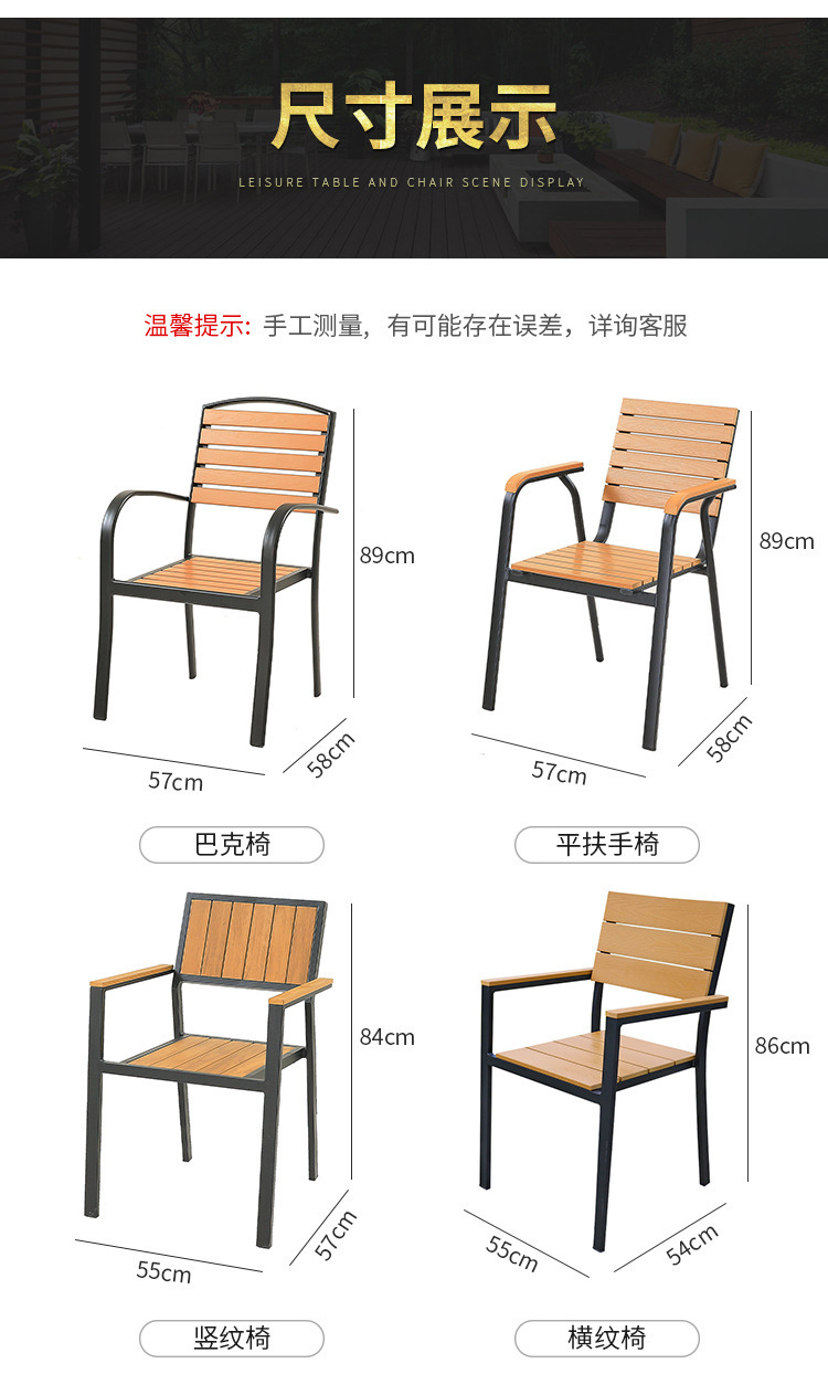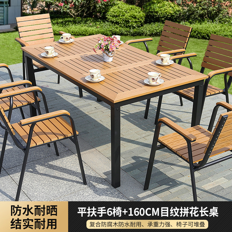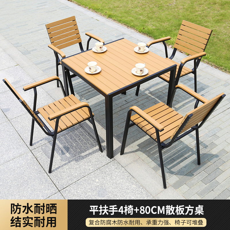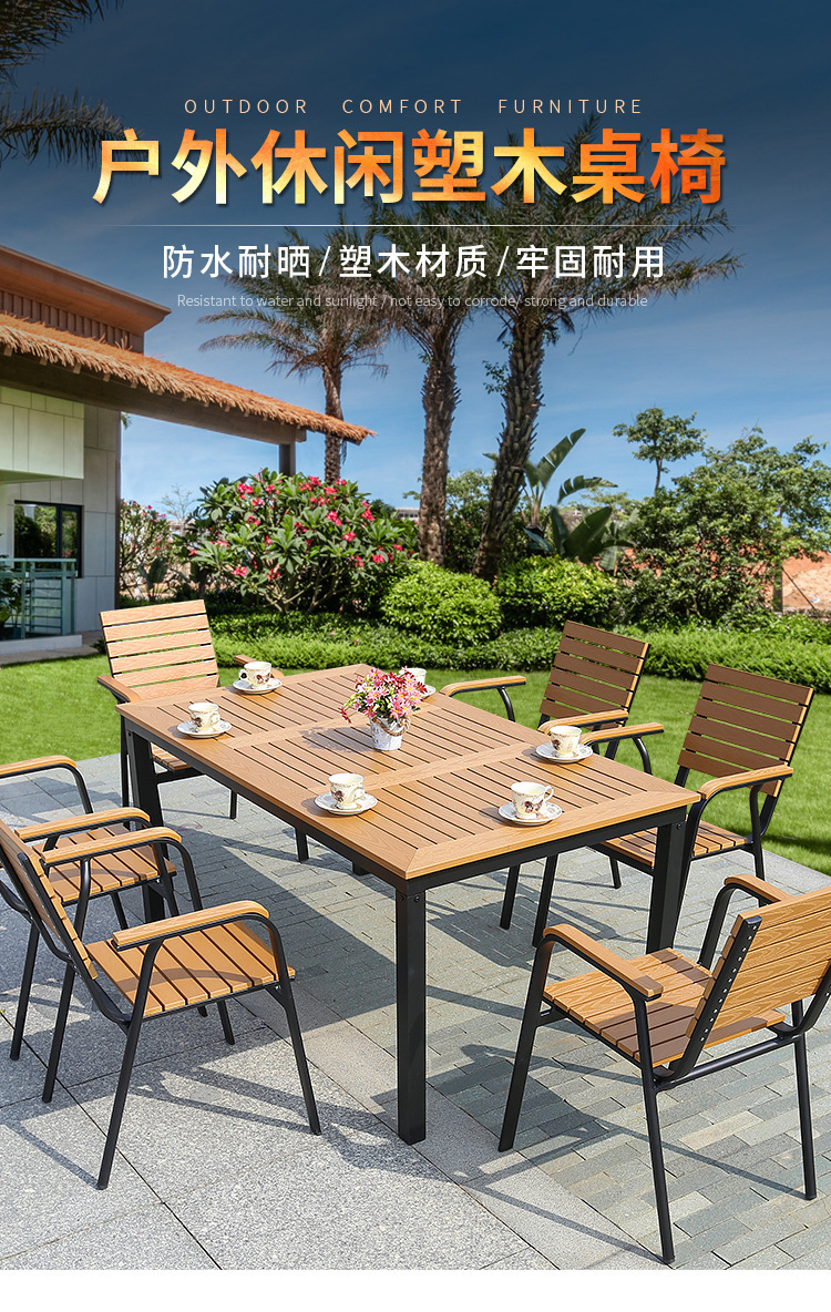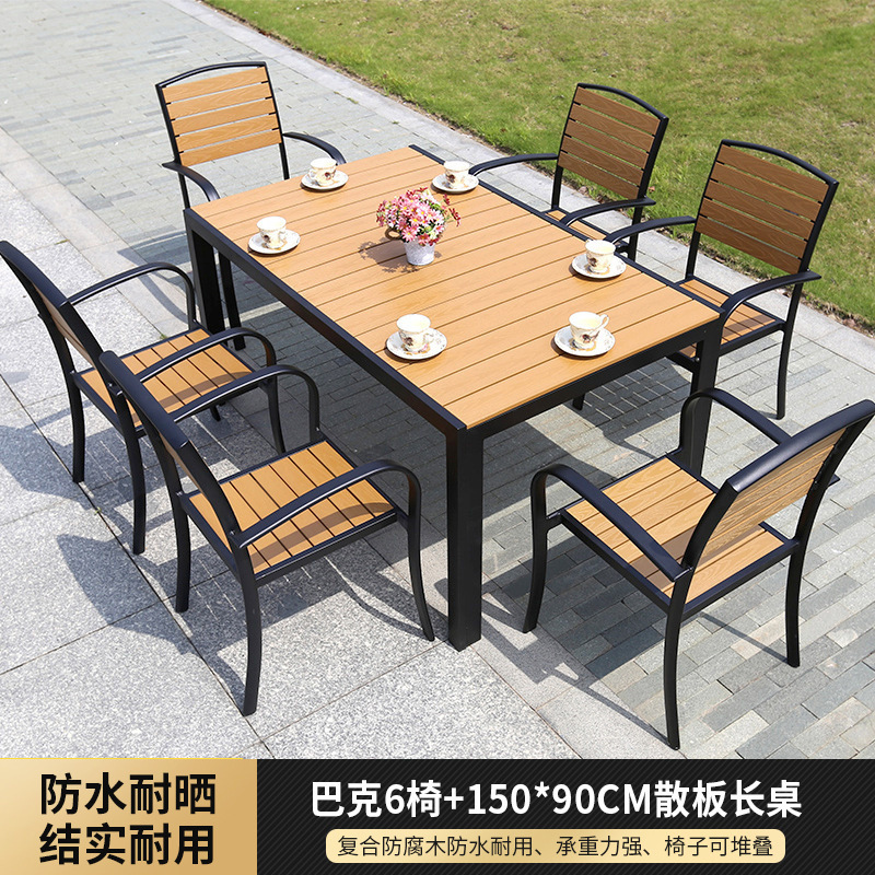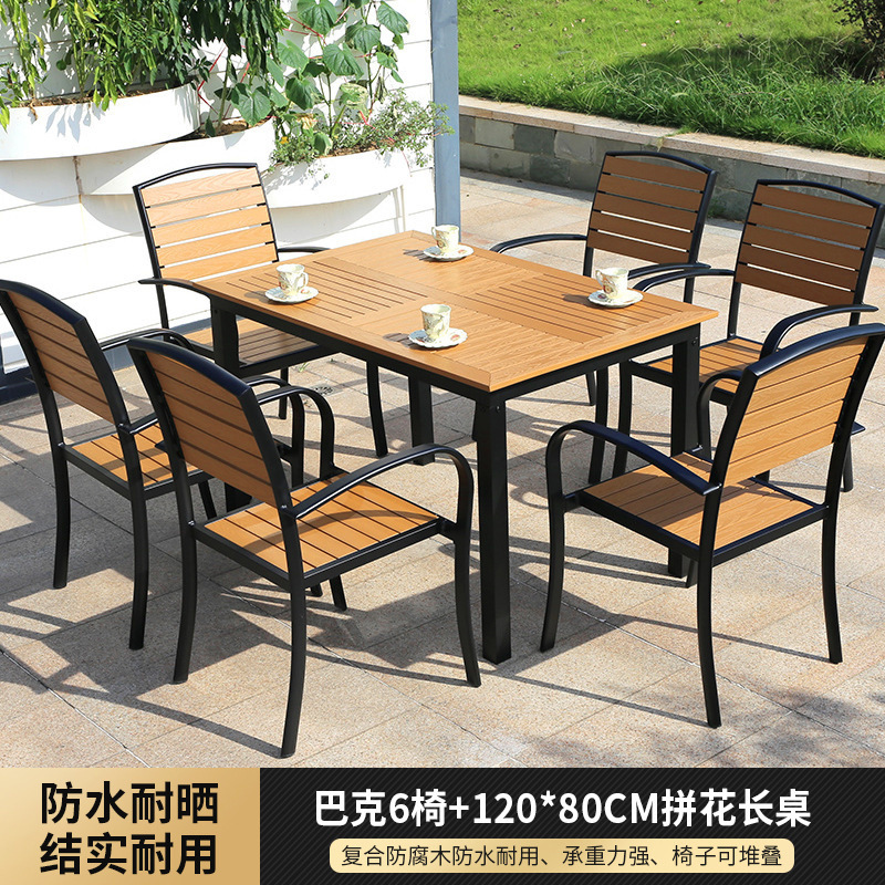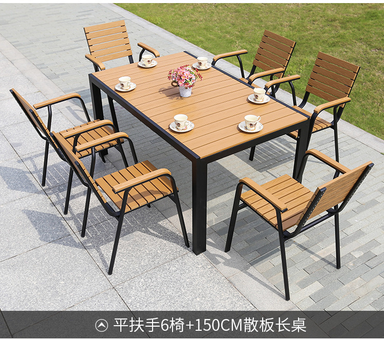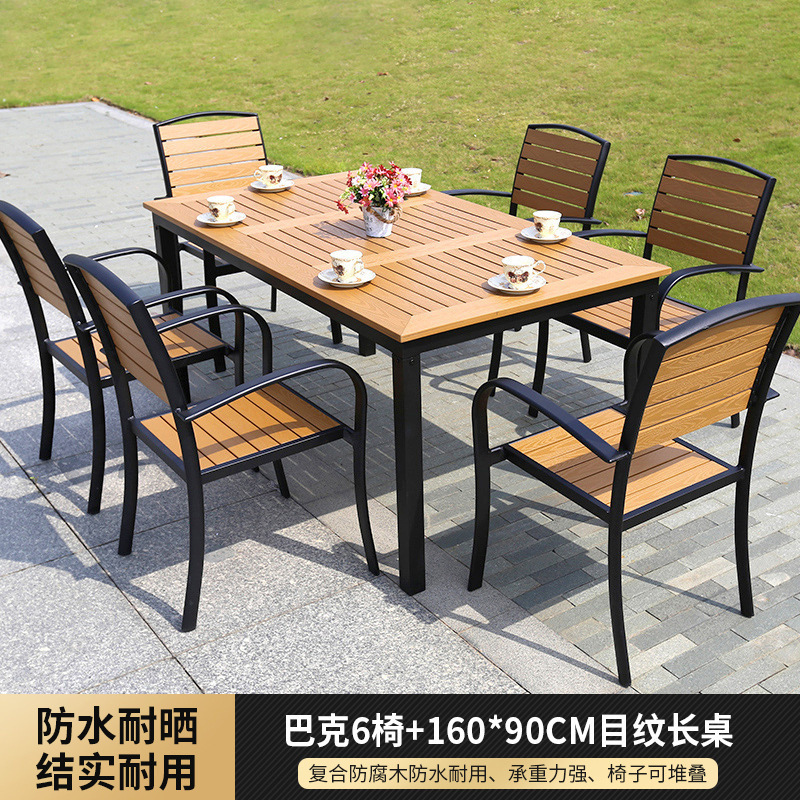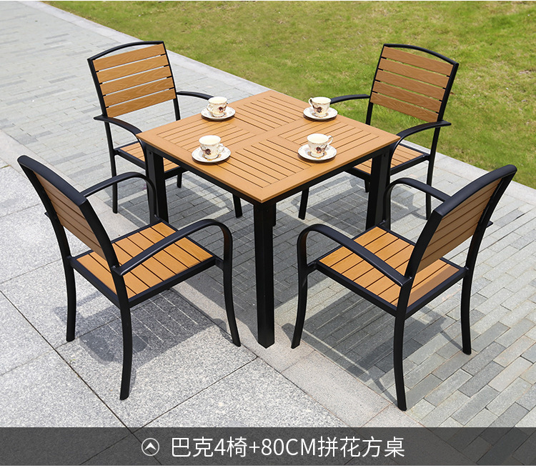 야외 테이블과 의자 플라스틱 목재 간단한 안뜰 빌라 테라스 발코니 인터넷 연예인 금속 창조적 인 레저 외부 식탁 조합
