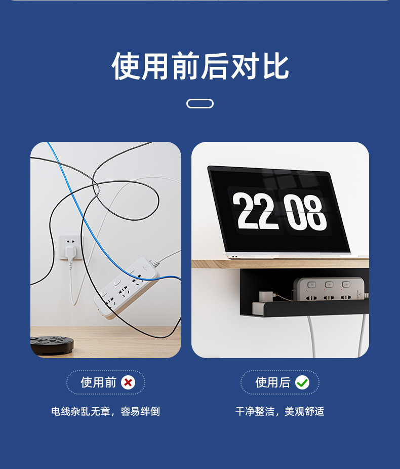 책상 아래 케이블 관리 랙, 펀치 없는 전선 보관 슬롯, 컴퓨터 책상 아래 플러그인 스트립 고정 케이블스토어 가기