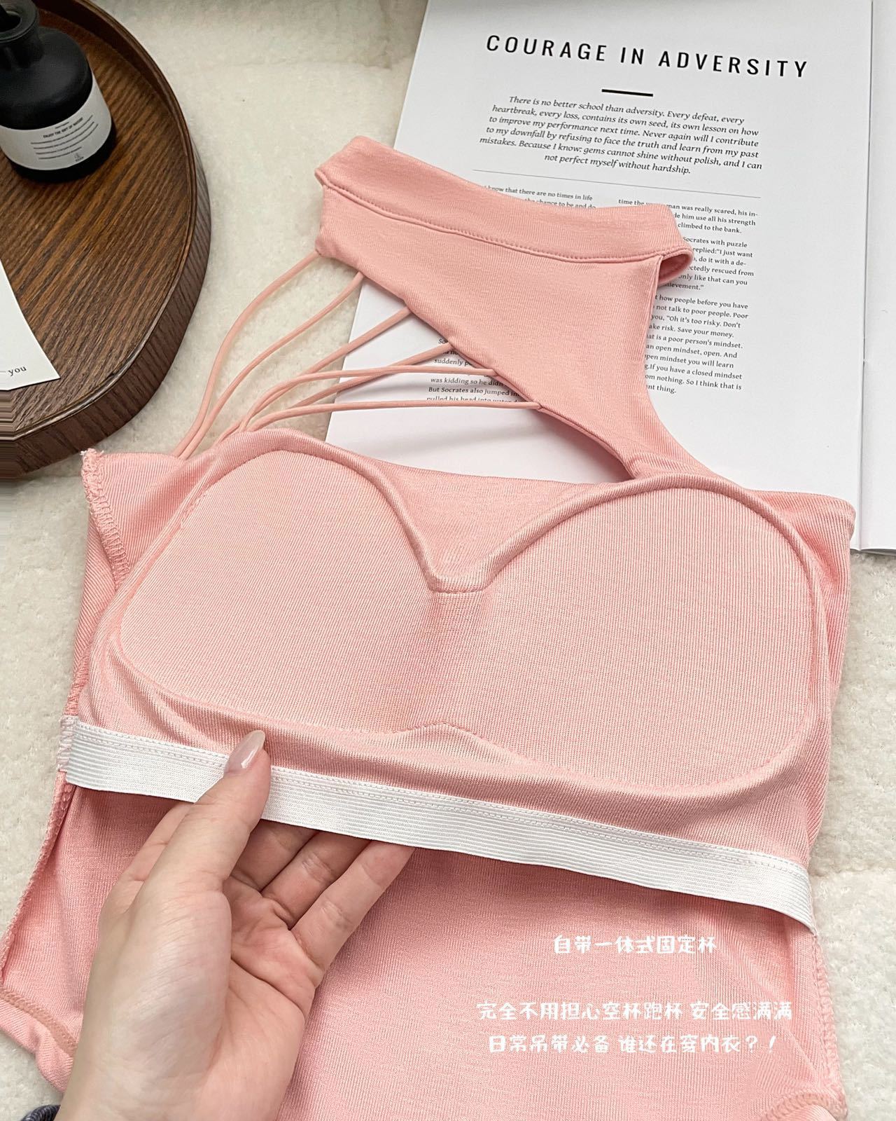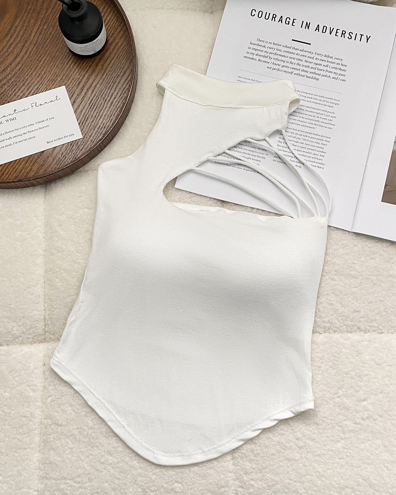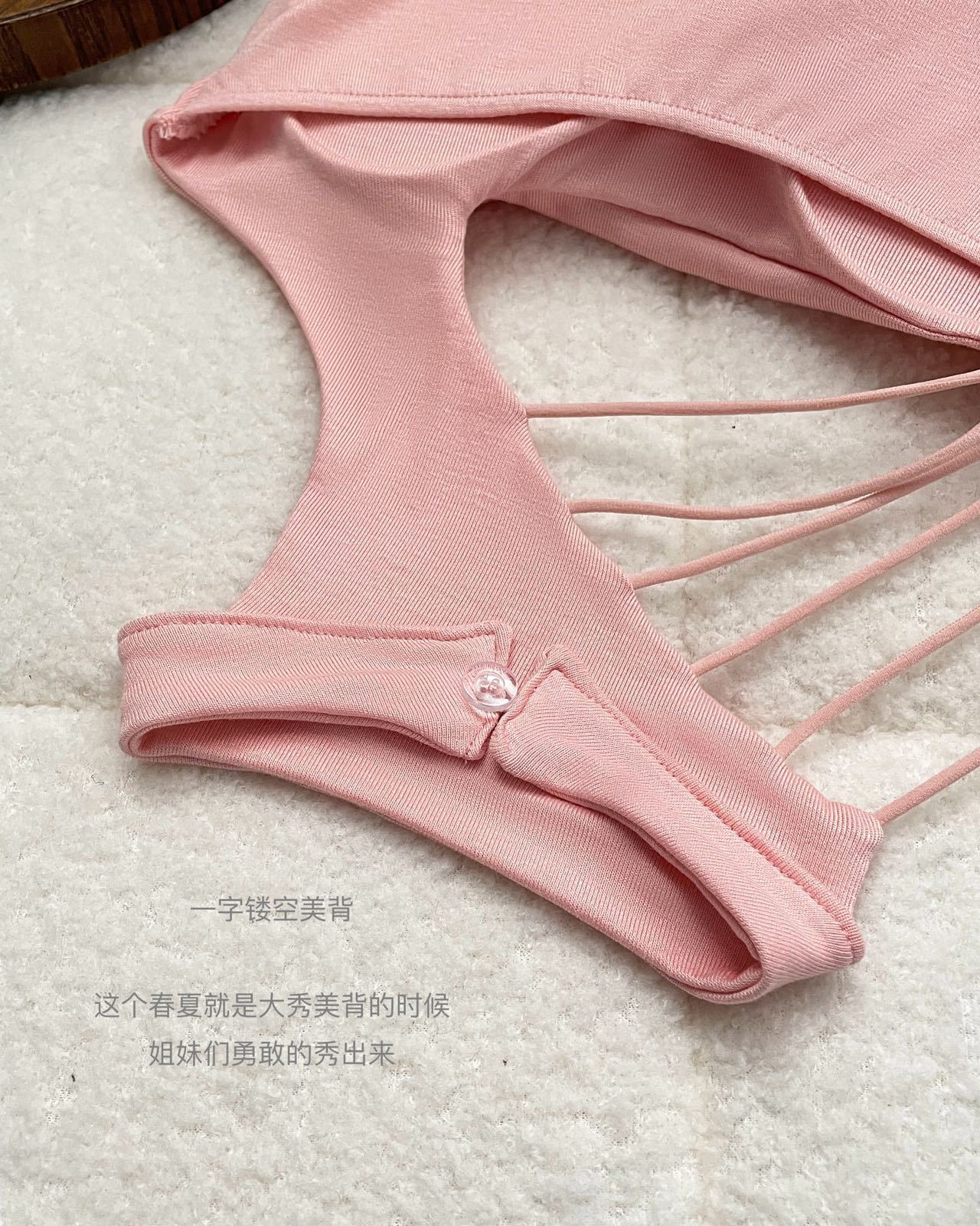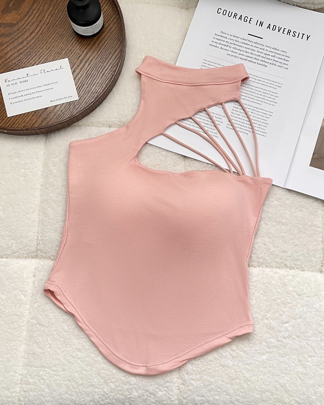 L288을 한국어로 번역하세요 # 아름다운 소녀 중공 홀터넥 캐미솔 여름 슬림핏 불규칙한 짧은 탑