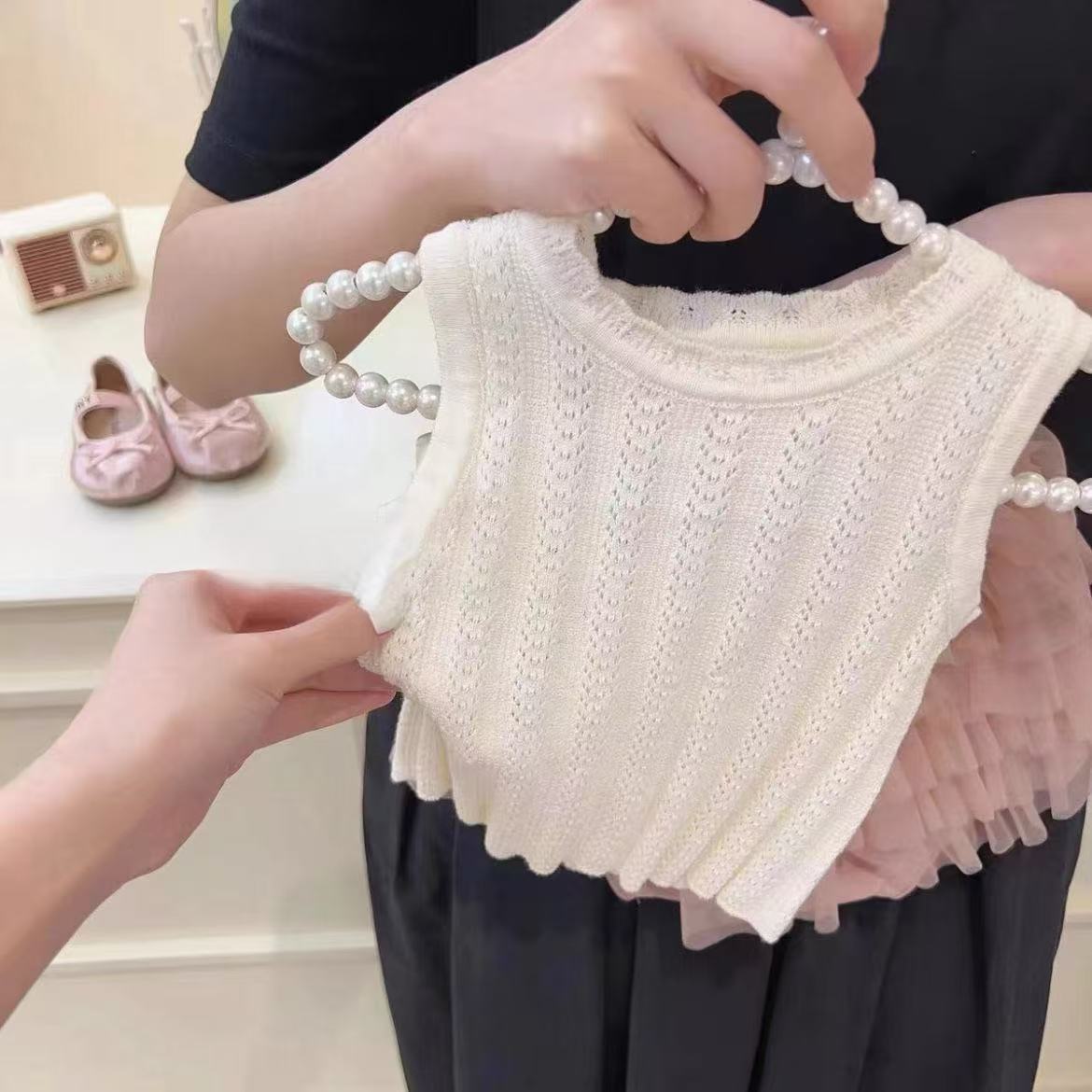 소녀의 2025 여름 투투 바지 스커트 투피스 세트 하이 퀄리티 메쉬 케이크 스커트 귀여운 조끼 반바지 투피스 세트