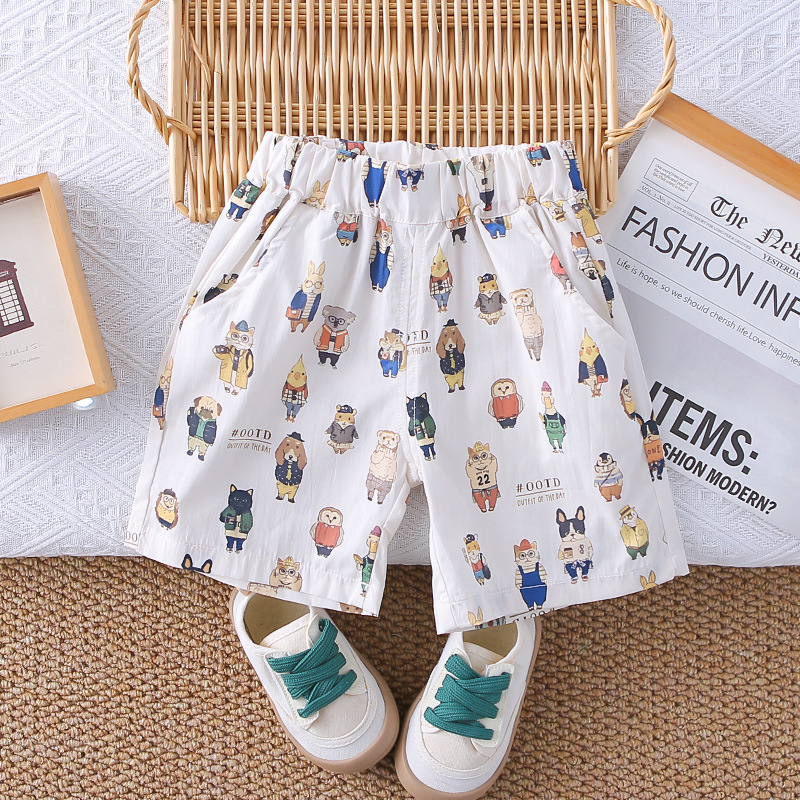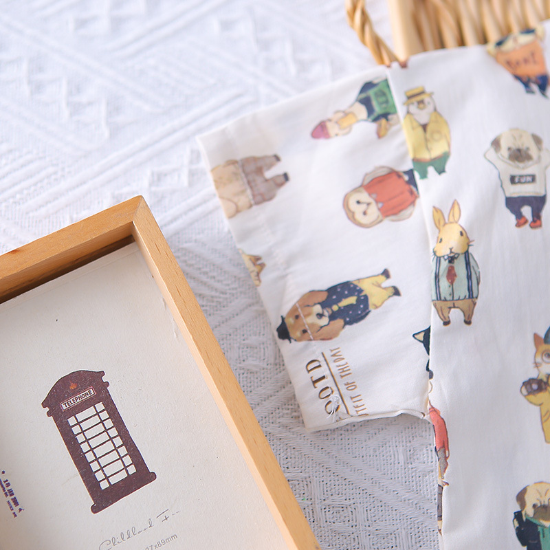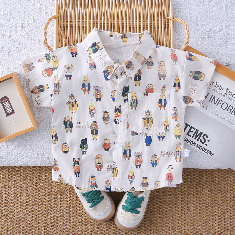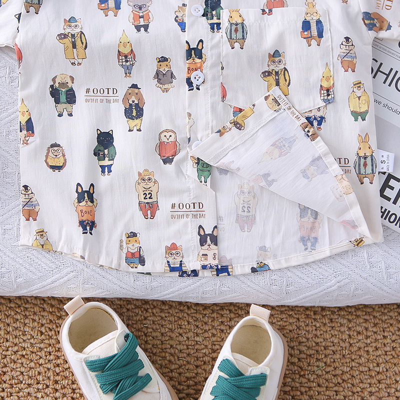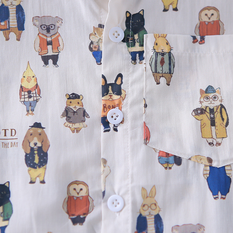 • 화이트 X25071 - 올오버 프린트 애니멀 셔츠 반팔 투피스 세트