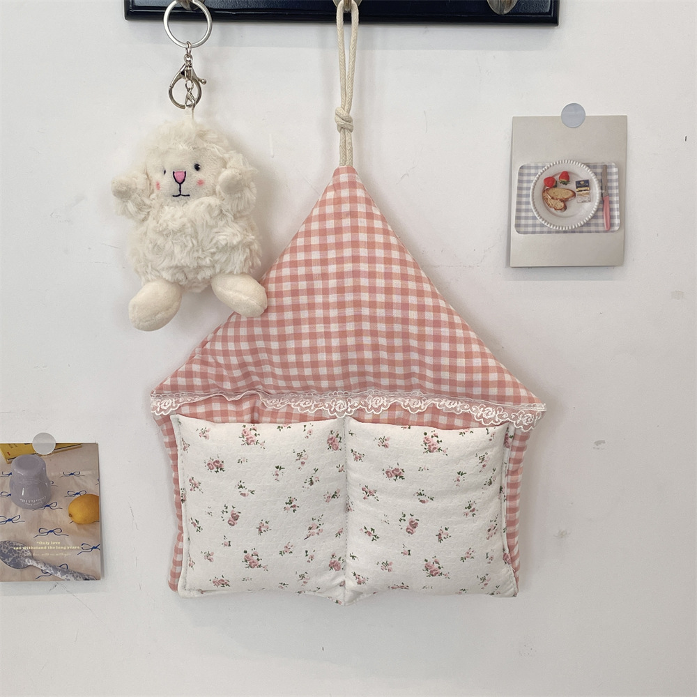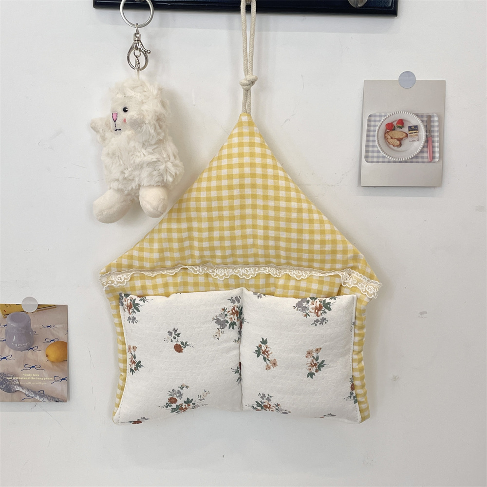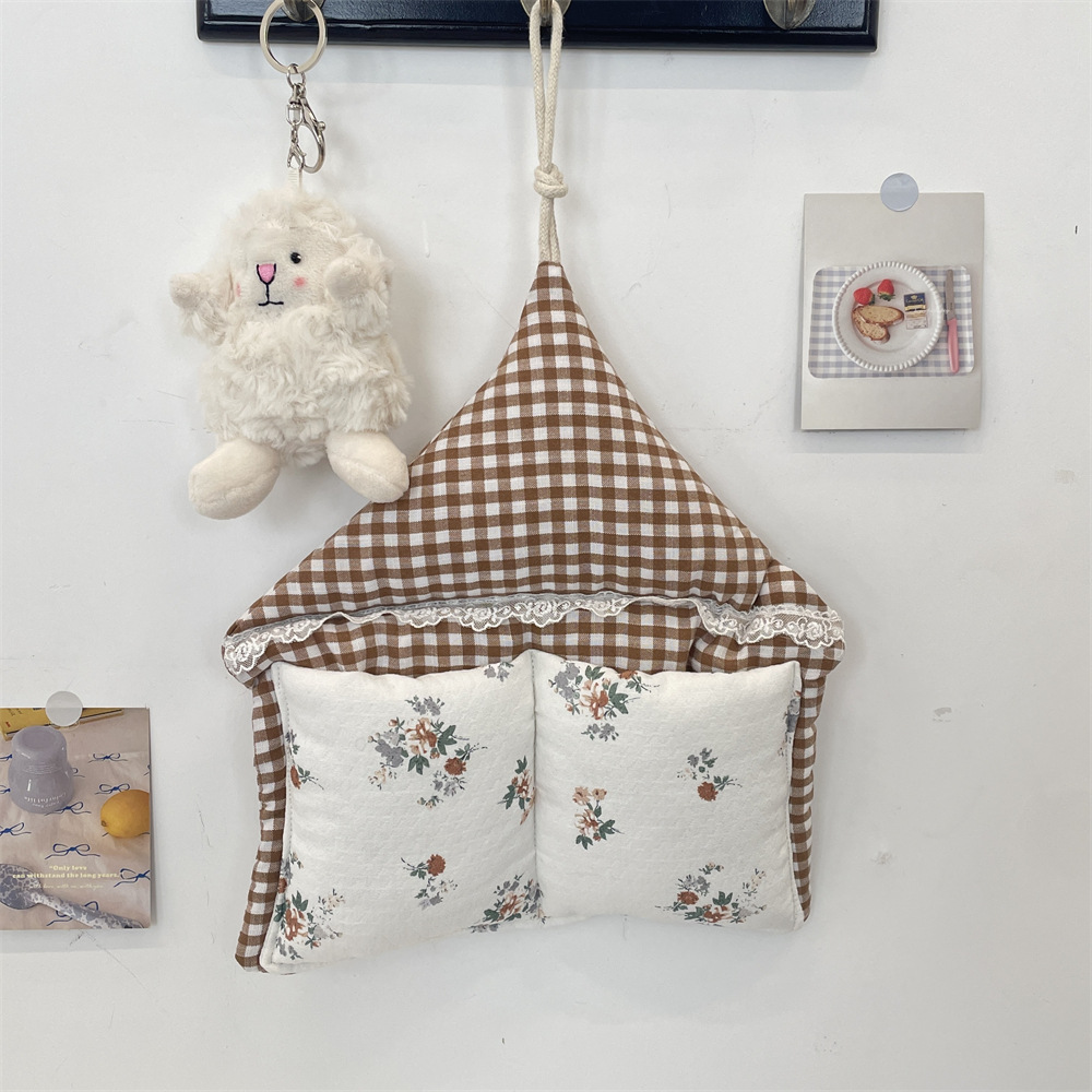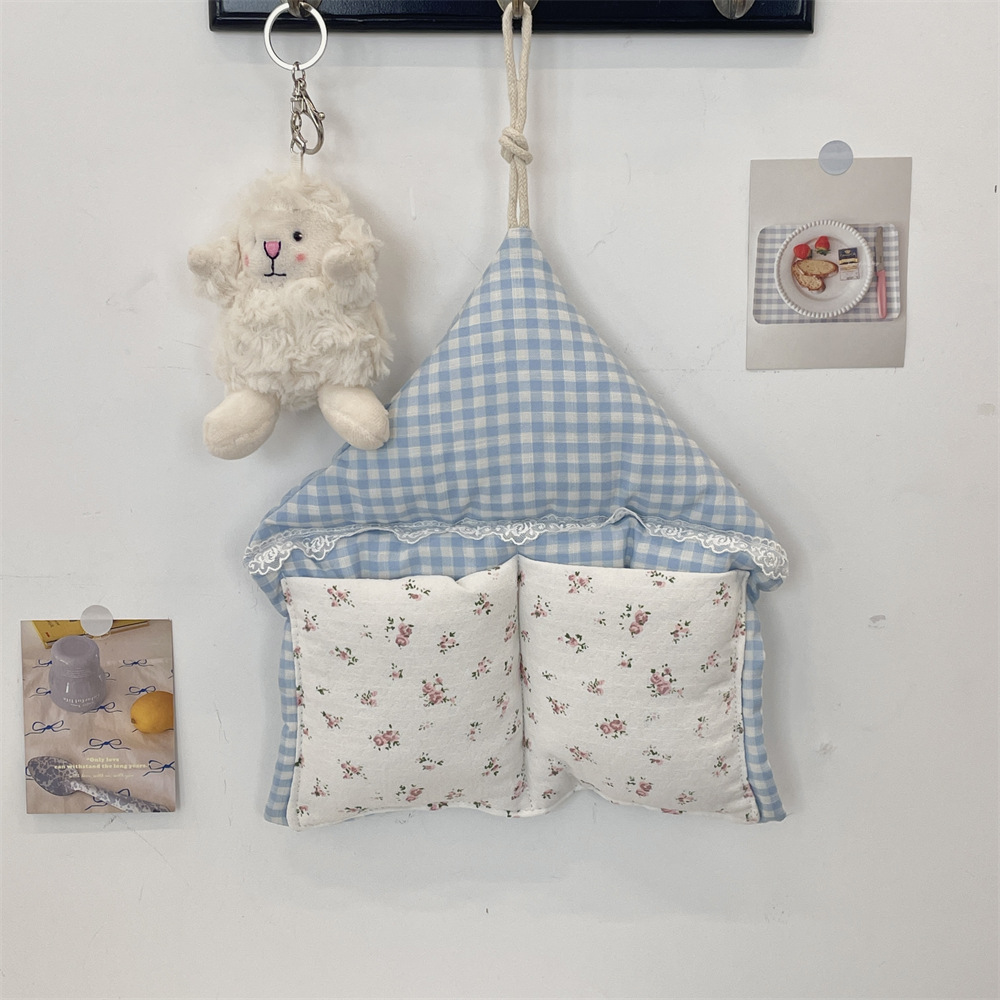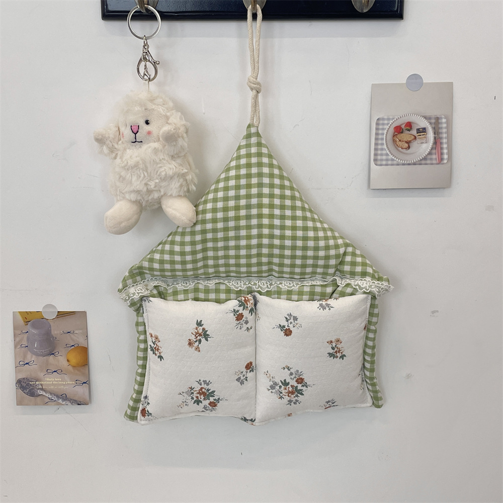54124 마카롱 컬러 작은 격자 무늬 교수형 가방 벽 기숙사 침대 보관 가방 휴대 전화 문구 잡화 보관 가방