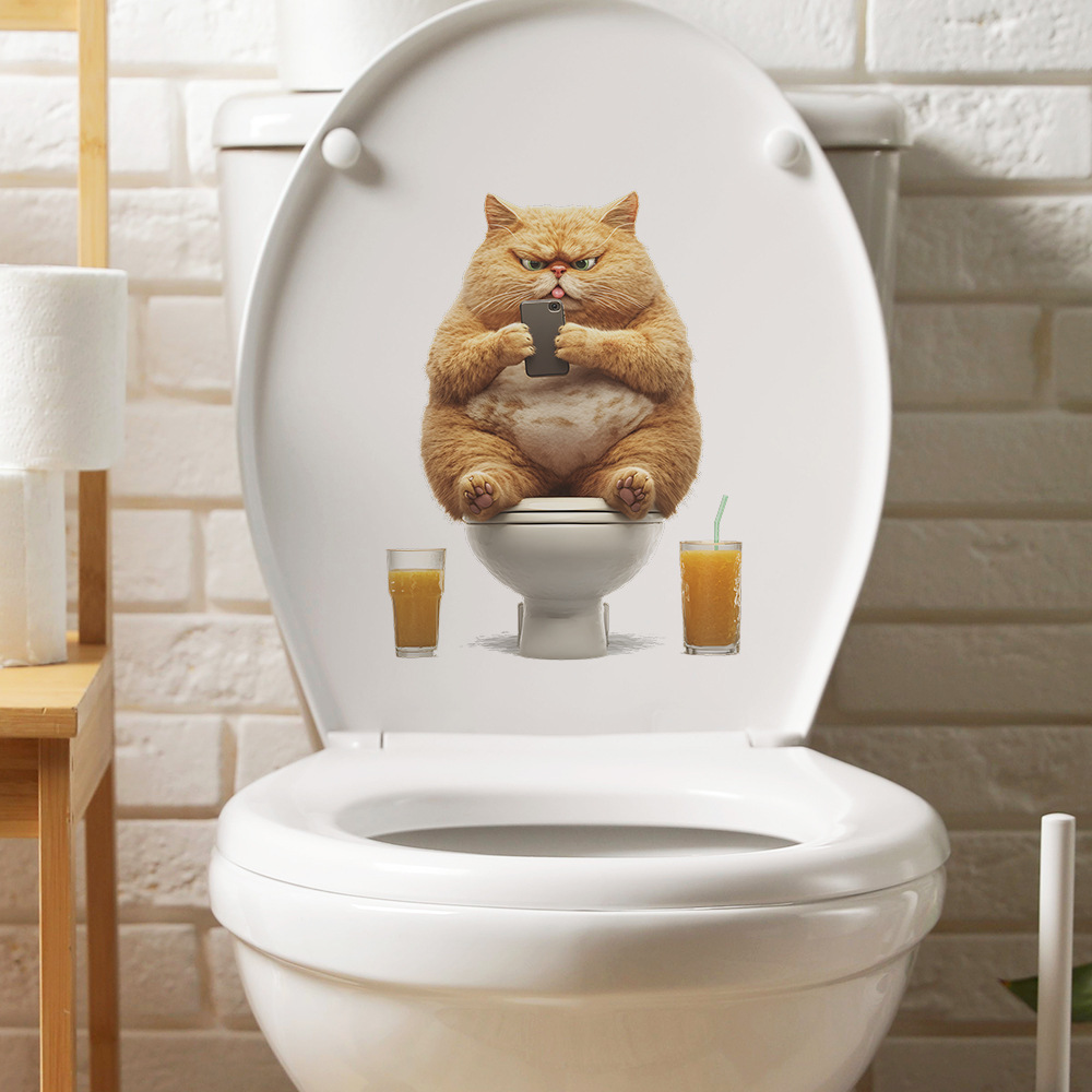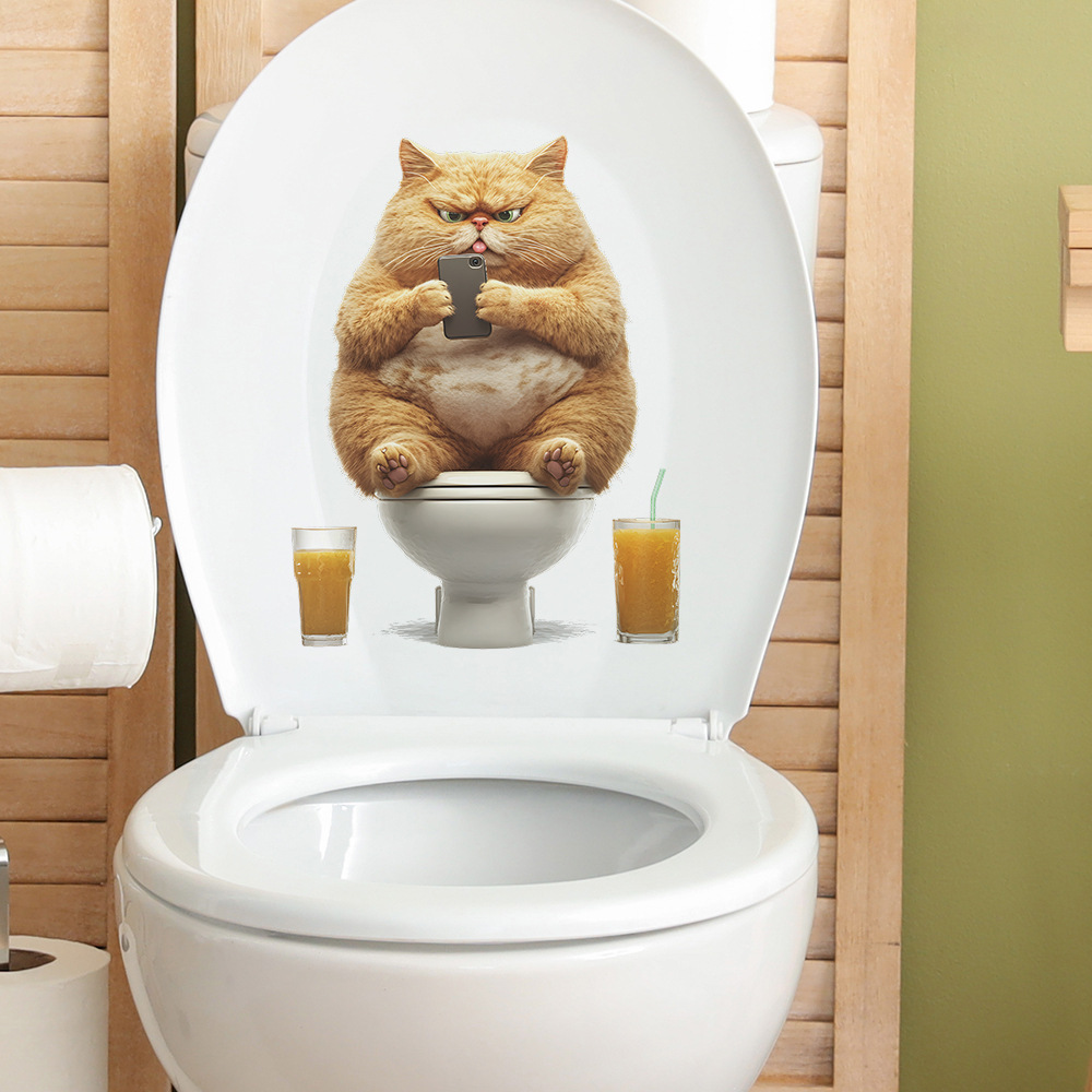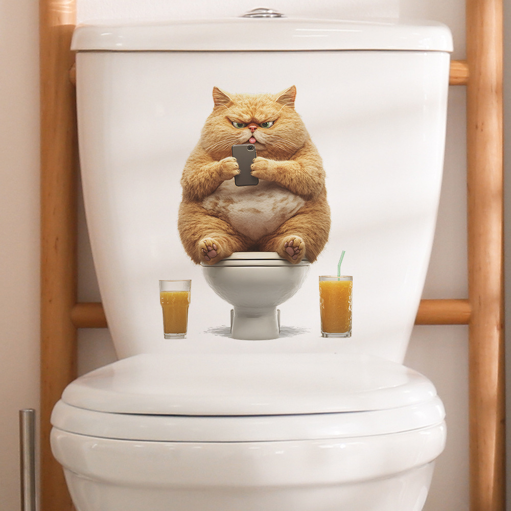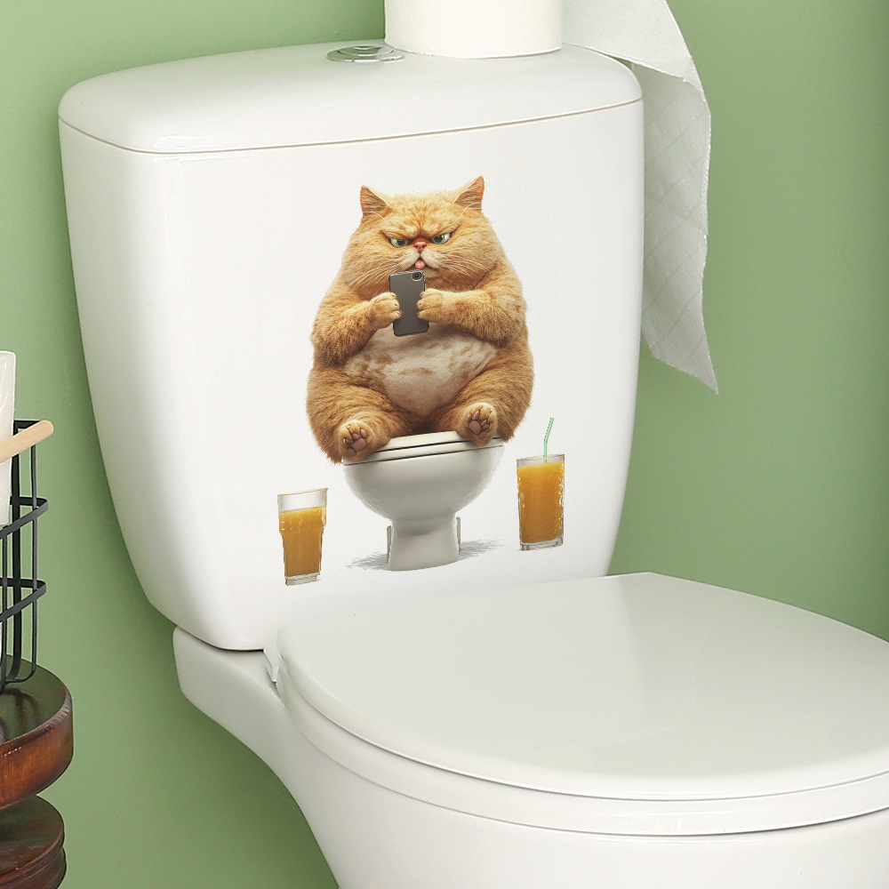 대외 무역 창조적 인 작은 뚱뚱한 고양이 놀이 휴대 전화 화장실 스티커 욕실 화장실 홈 미화 장식 스티커 도매 자체 접착