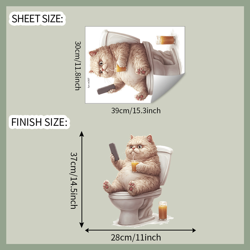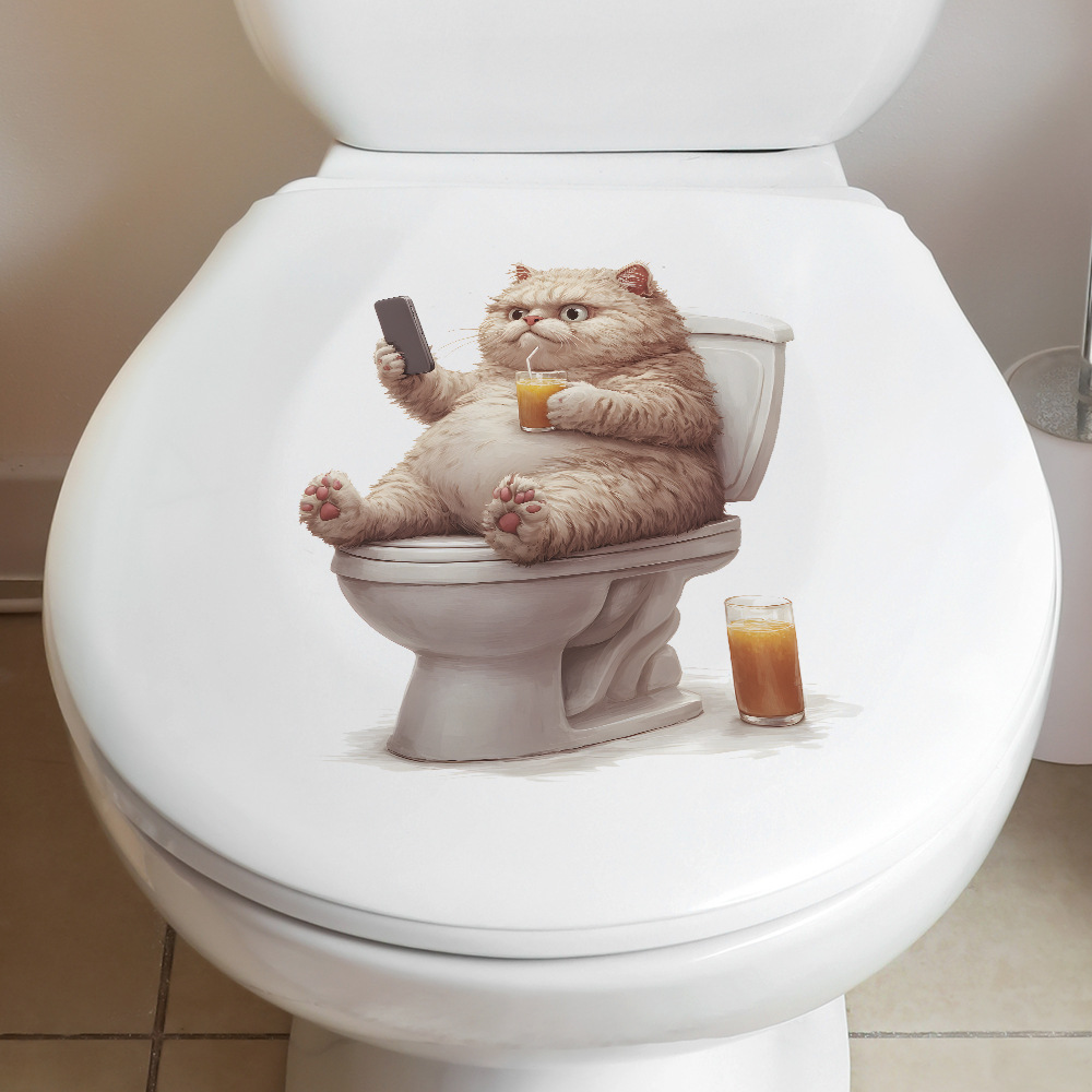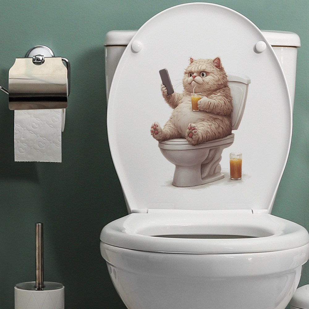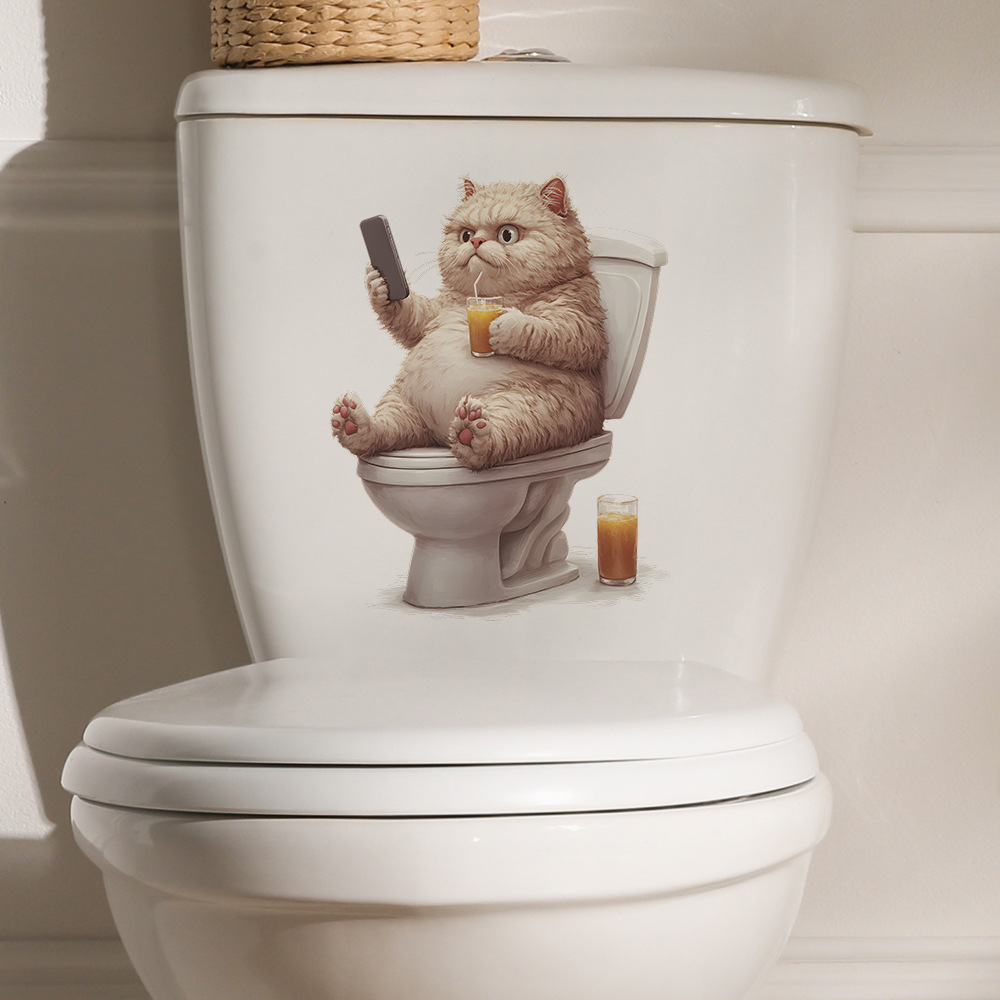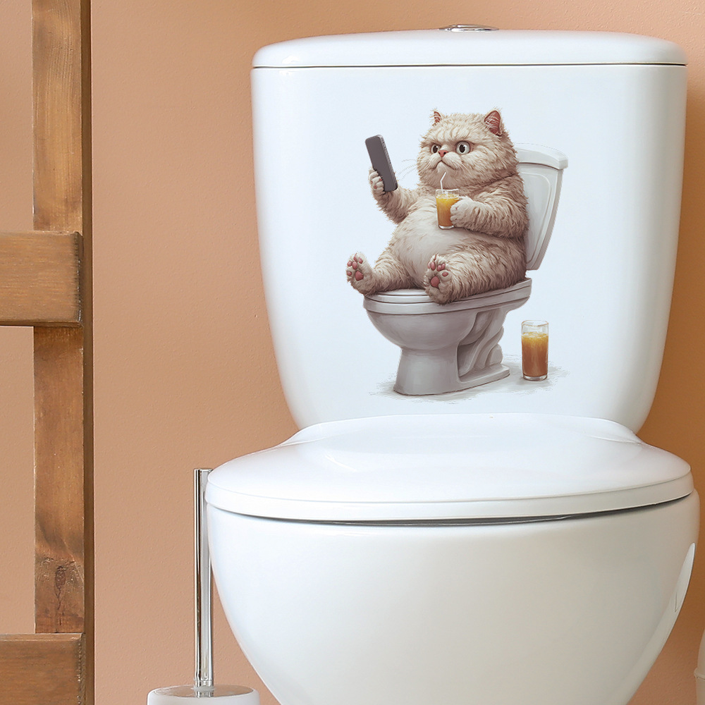 대외 무역 창조적 인 작은 뚱뚱한 고양이 놀이 휴대 전화 화장실 스티커 욕실 화장실 홈 미화 장식 스티커 도매 자체 접착