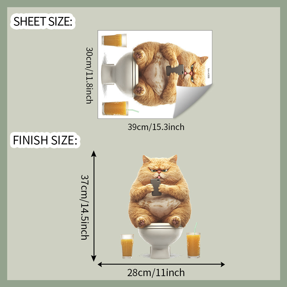 대외 무역 창조적 인 작은 뚱뚱한 고양이 놀이 휴대 전화 화장실 스티커 욕실 화장실 홈 미화 장식 스티커 도매 자체 접착스토어 가기