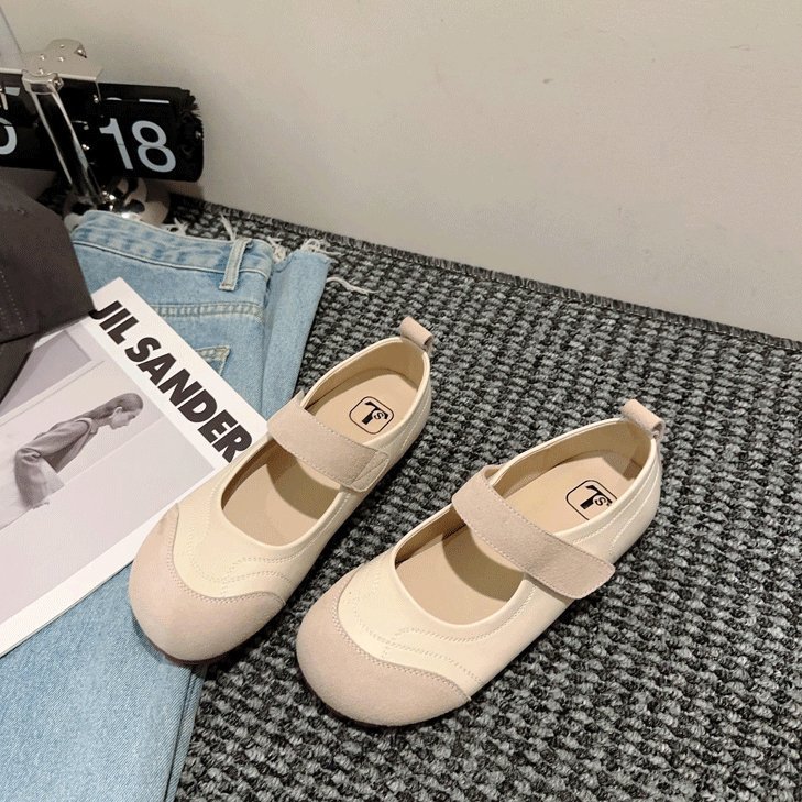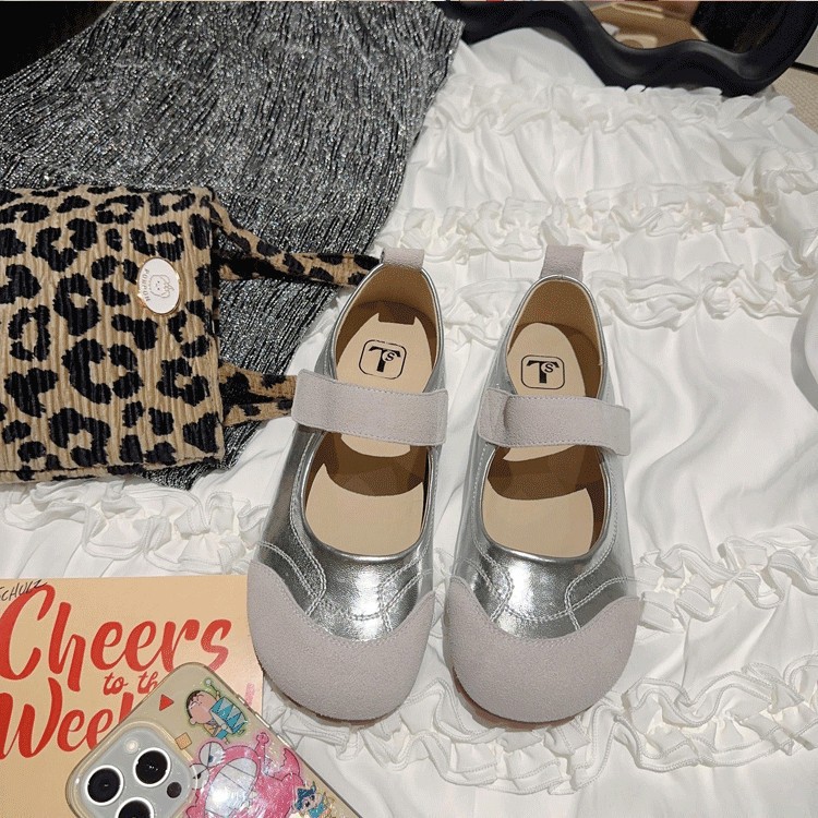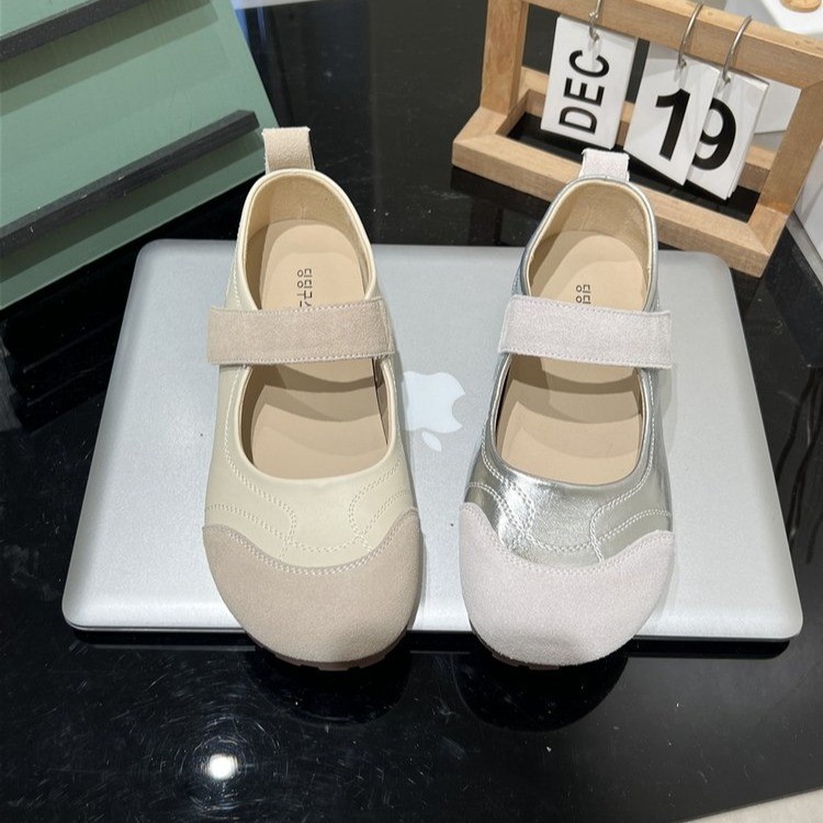 2025 여름 새로운 스타일 플랫 신발 달콤한 발레 스타일 신발 라운드 발가락 패션 색상 매칭 벨크로 싱글 레이어 신발스토어 가기