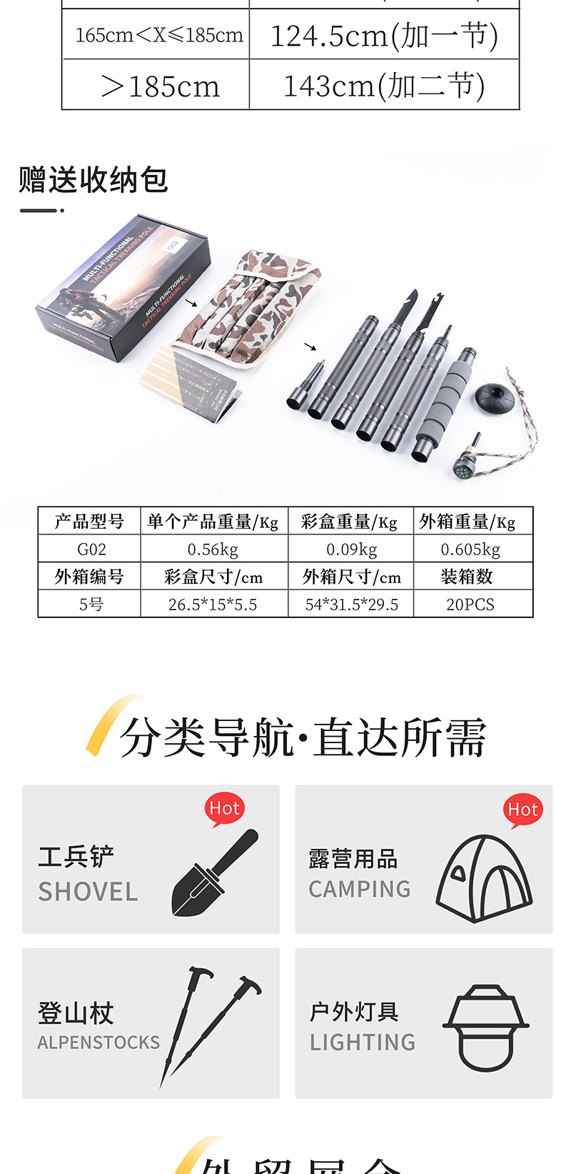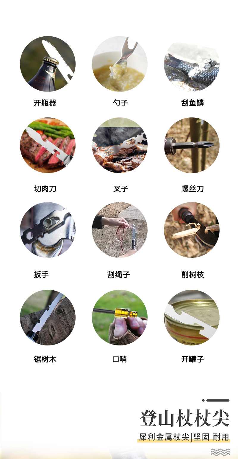 알루미늄 합금 다기능 트레킹 스틱 야외 트레킹 하이킹 경량 텔레스코픽 접이식 다기능 트레킹 스틱스토어 가기