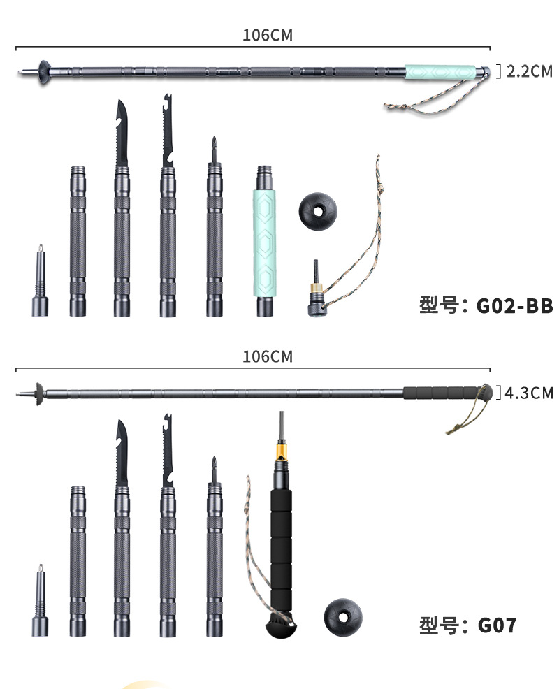 알루미늄 합금 다기능 트레킹 스틱 야외 트레킹 하이킹 경량 텔레스코픽 접이식 다기능 트레킹 스틱