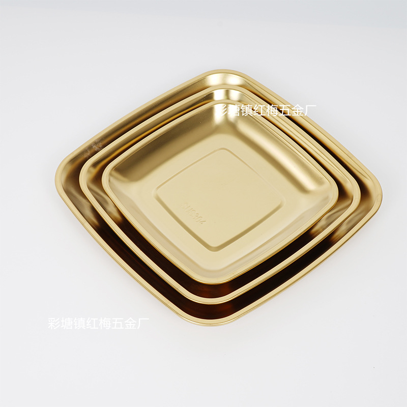 국경 간 304 스테인레스 스틸 다목적 사각형 접시 두꺼운 소시지 롤 접시 황금 사각형 접시 가정용 바베큐 접시 차가운 야채 접시