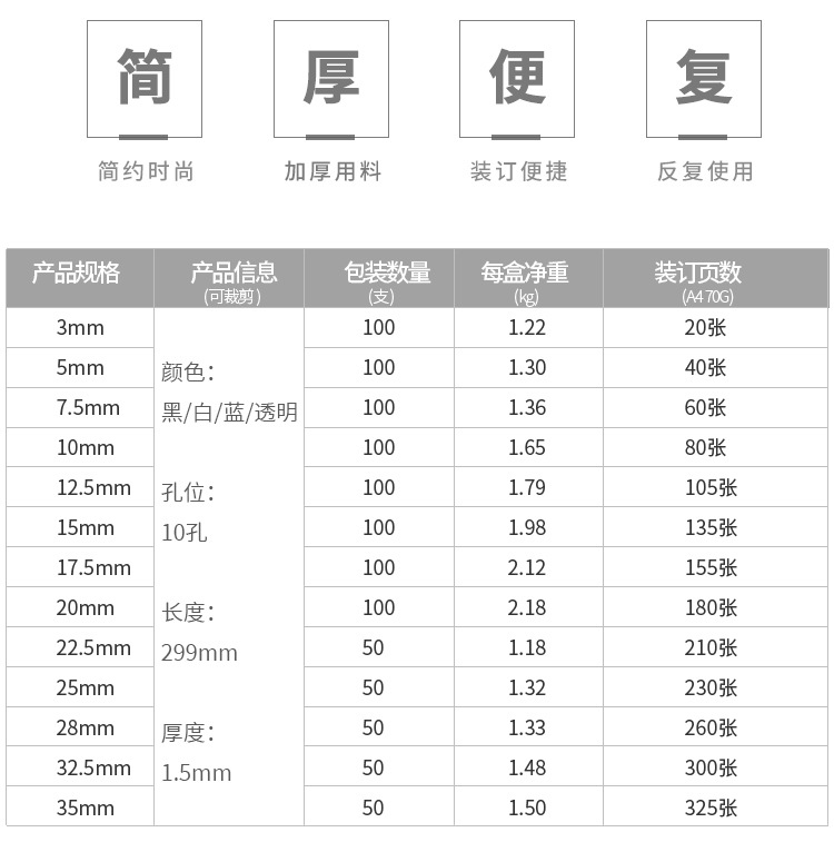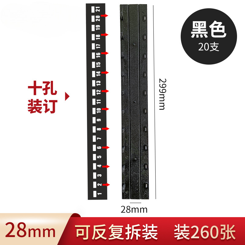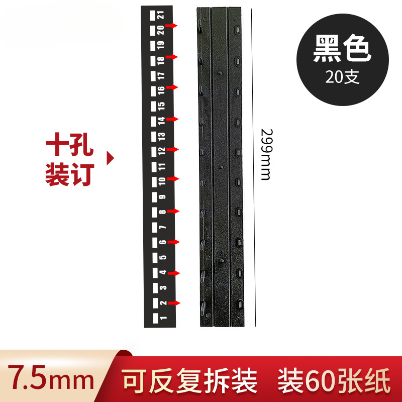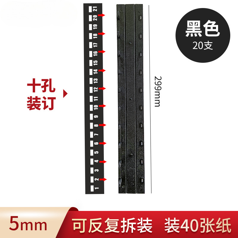바인딩 클립 스트립 A4 10 홀 클립 스트립 플라스틱 21 홀 펀치 기계 루스 리프 에지 스트립 파일 바인딩 클립 스트립 흑백 파란색