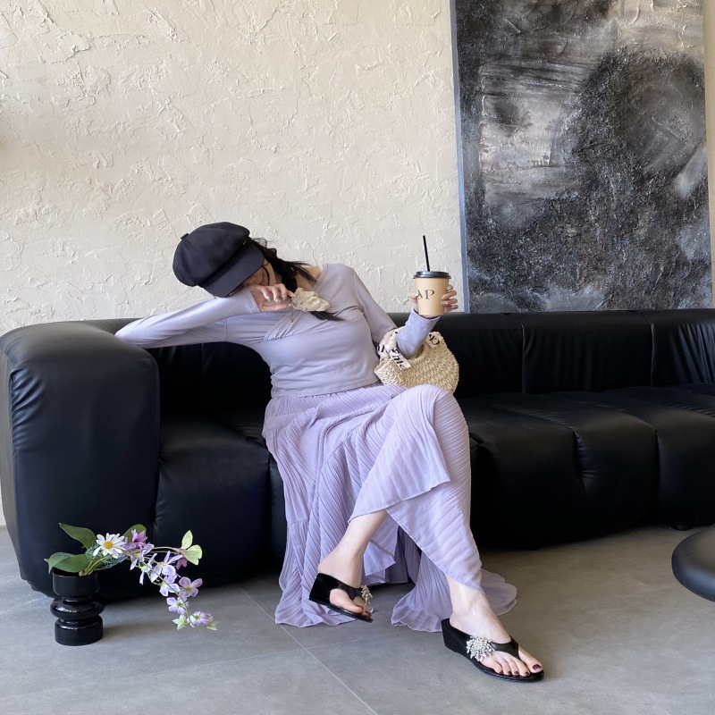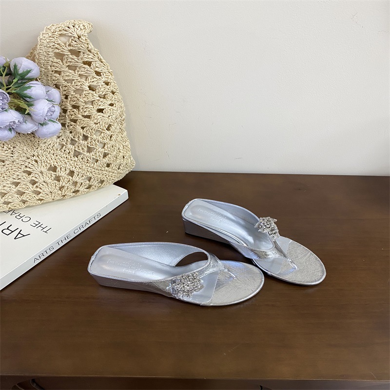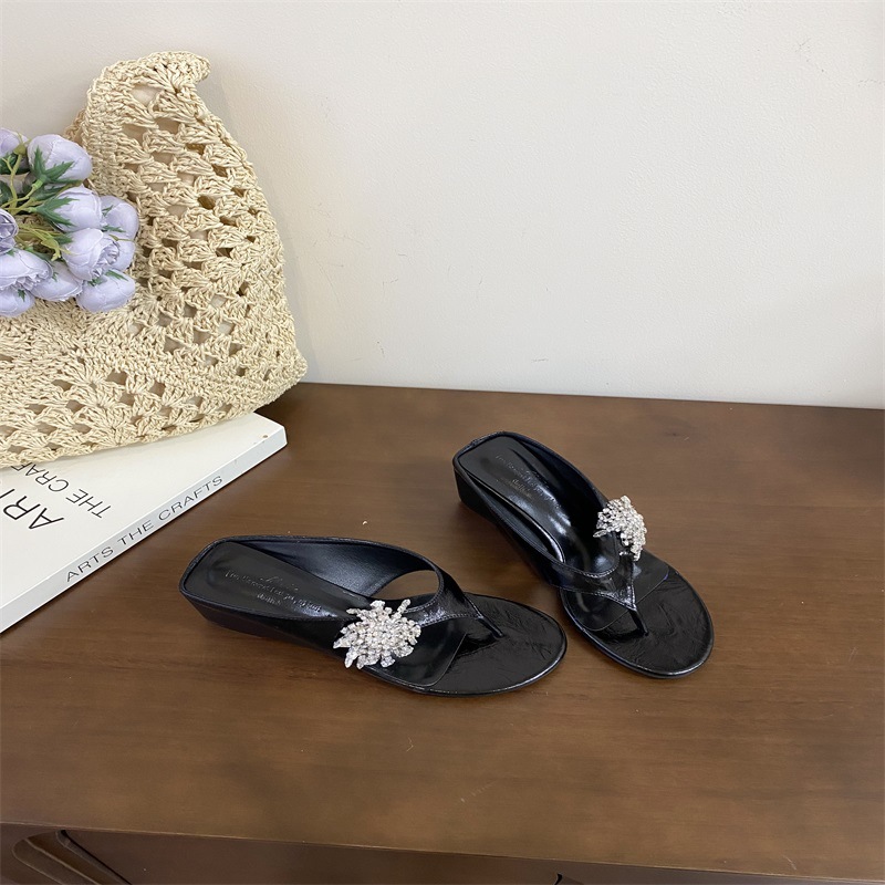 여성용 여름 아우터 샌들 2025 새로운 슬로프 힐, 아름다운 하프 슬리퍼, 섹시한 슬리퍼, 스커트와 비즈 장식 샌들스토어 가기