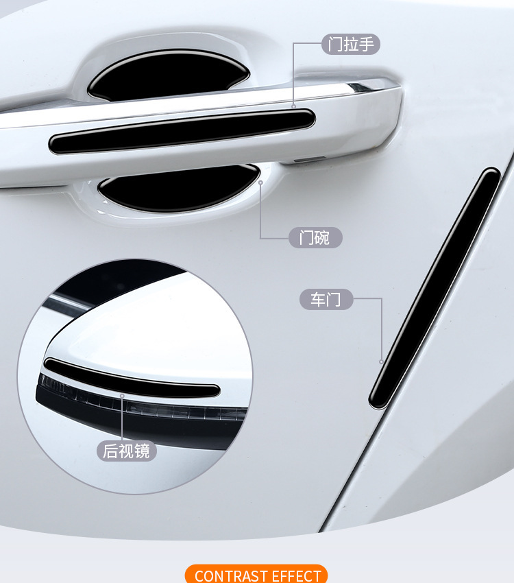 도어 충돌 방지 스트립 자동차 도어 보울 도어 스크래치 핸들 스티커 안티 스크래치 보호 장식 백미러 블랙 밝은 핸들