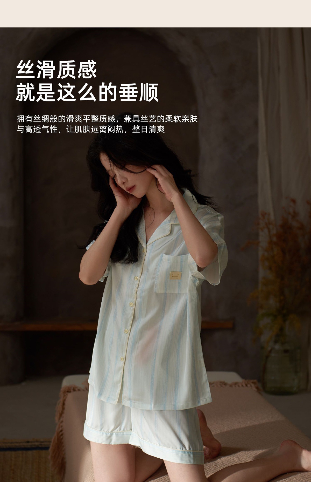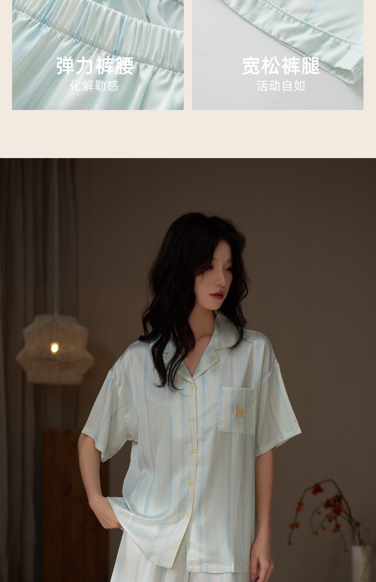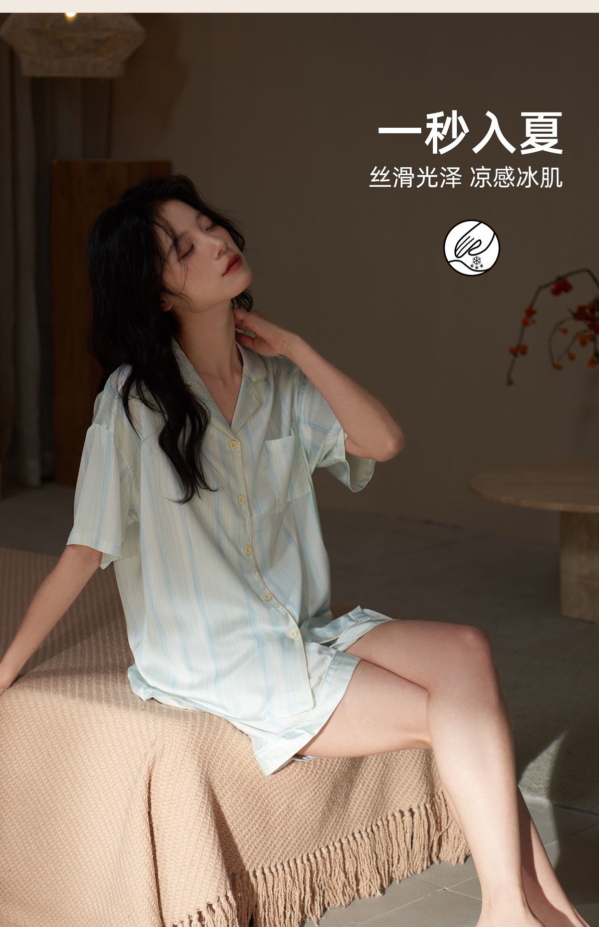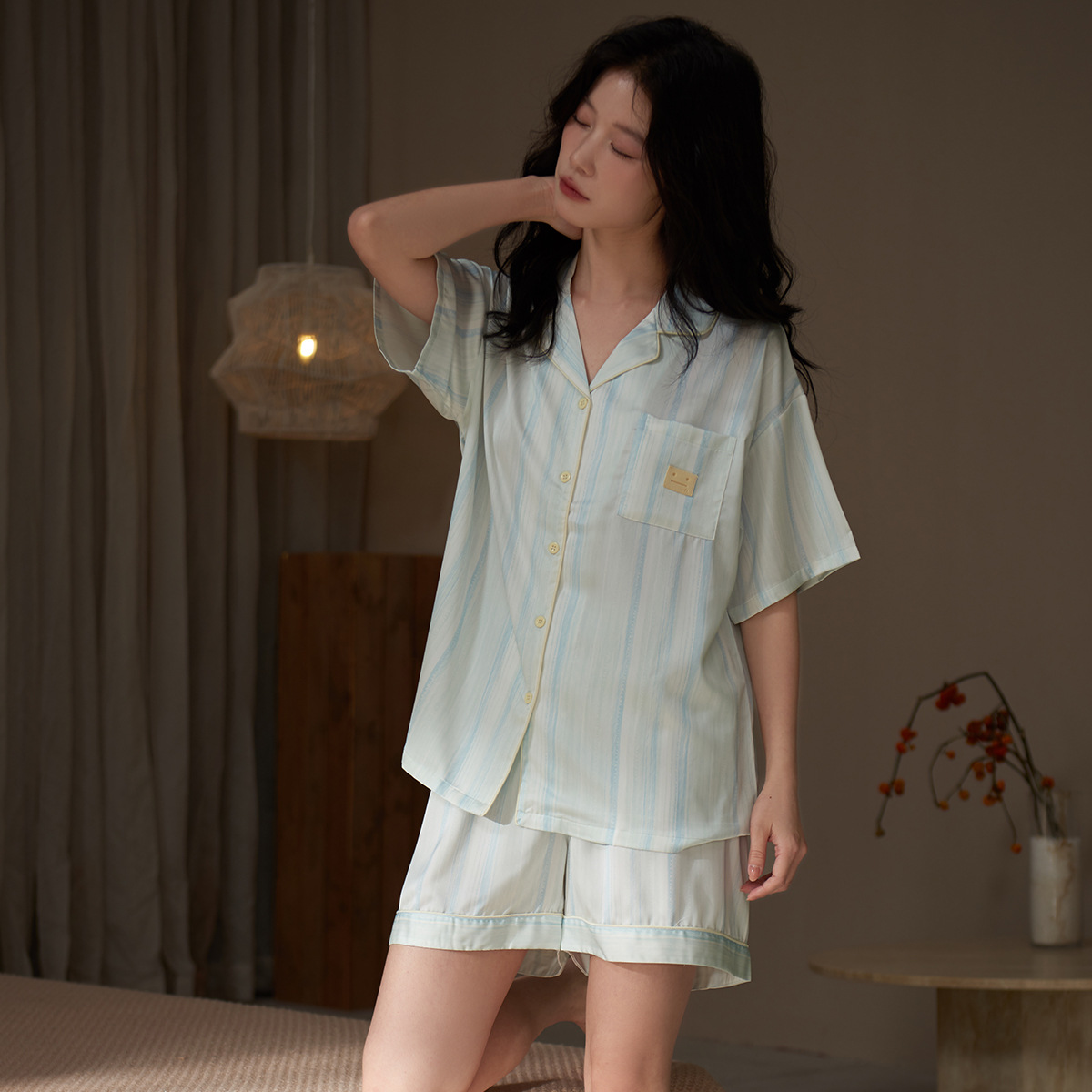 여성용 잠옷 여름 얼음 실크 반팔 반바지 여성 여름 얇은 새로운 모조 실크 가정복스토어 가기