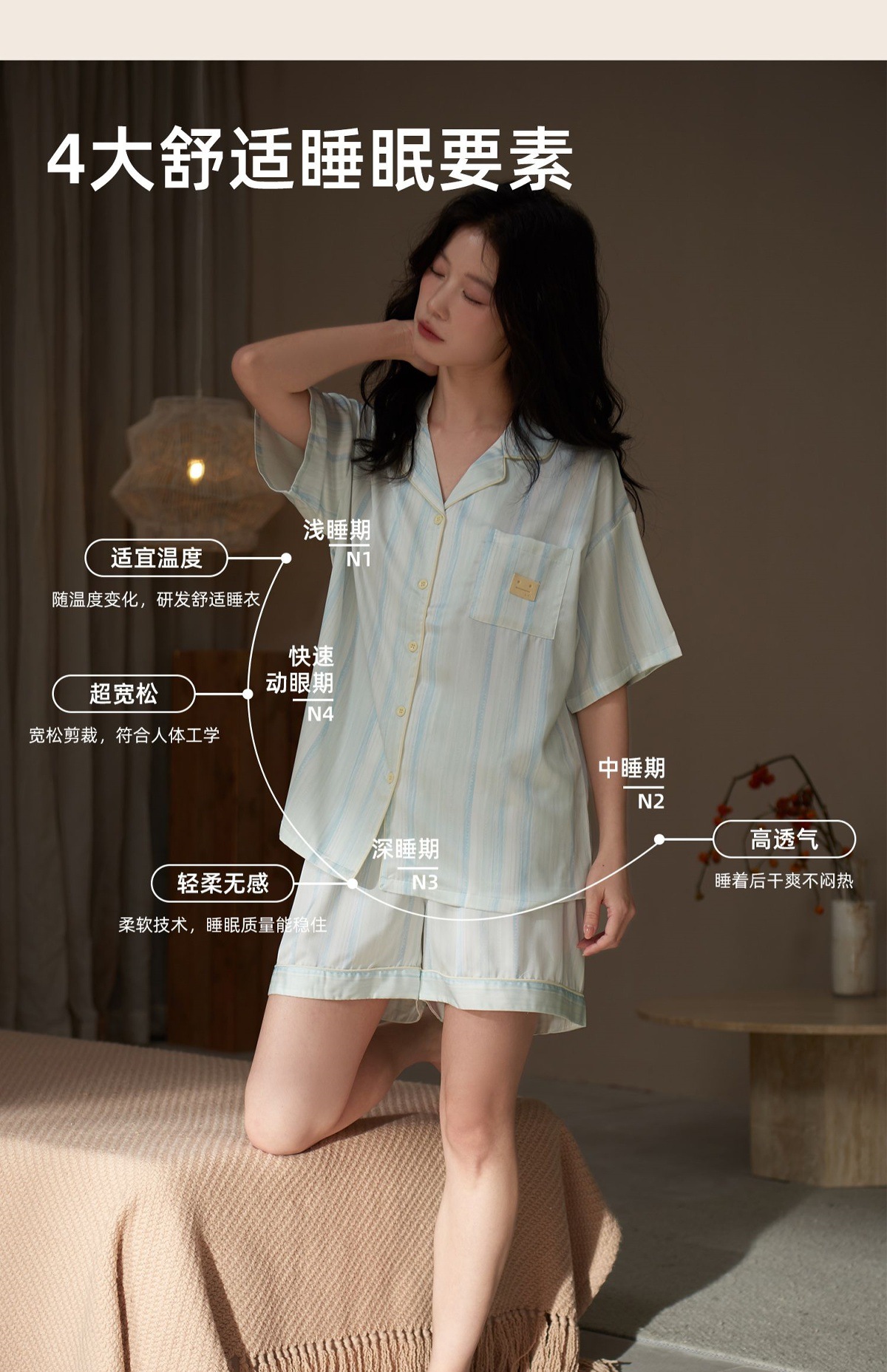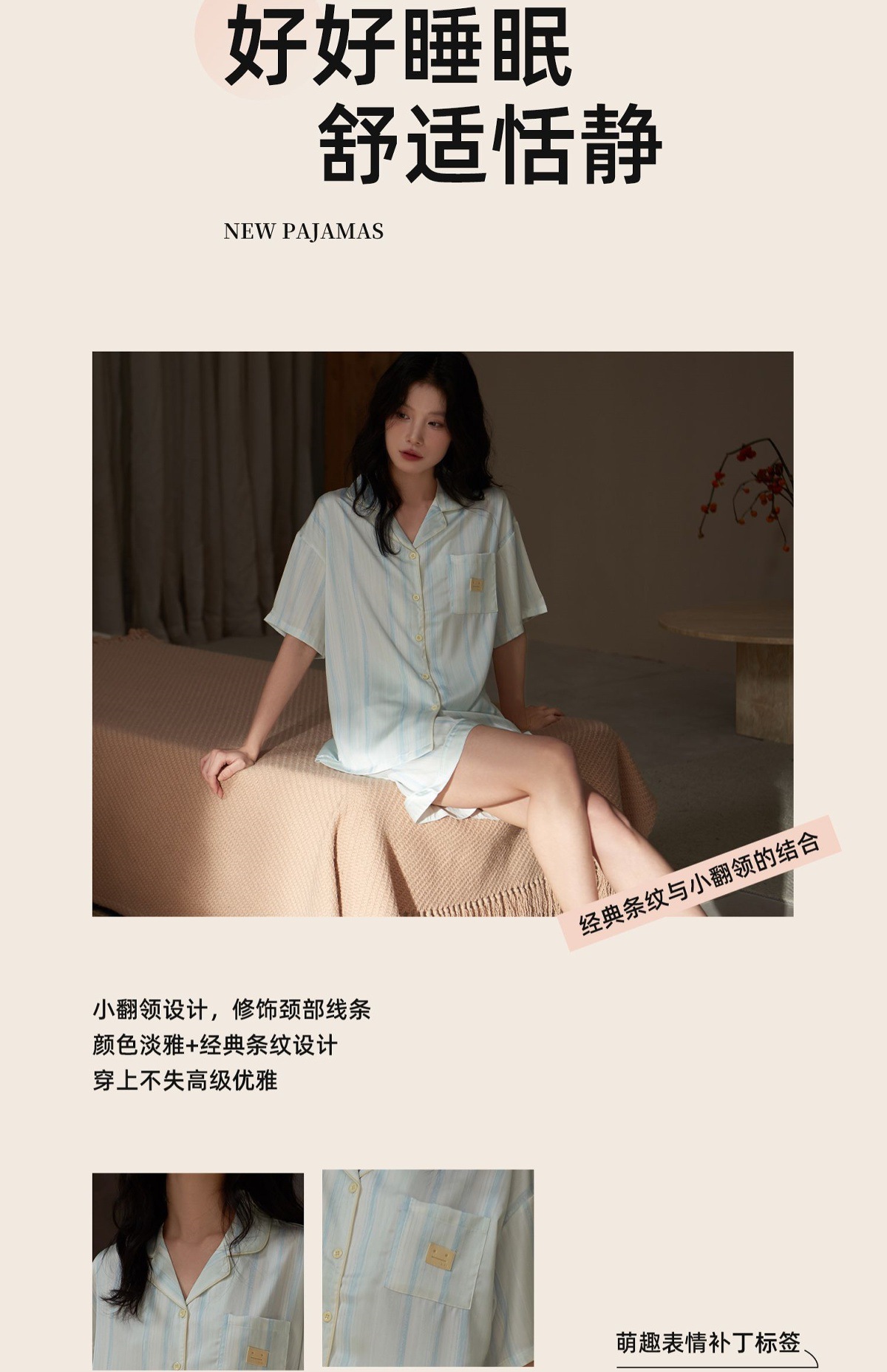 • SJ4389 더블 쇼트 블루 스트라이프 여성 모델