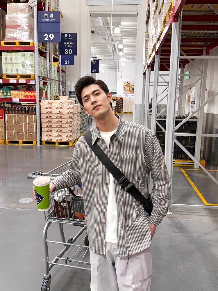 일본 복고풍 갈색 줄무늬 셔츠 긴팔 봄, 가을 스트리트 패션 브랜드 루즈하고 다재다능한 캐주얼 셔츠 탑 재킷스토어 가기
